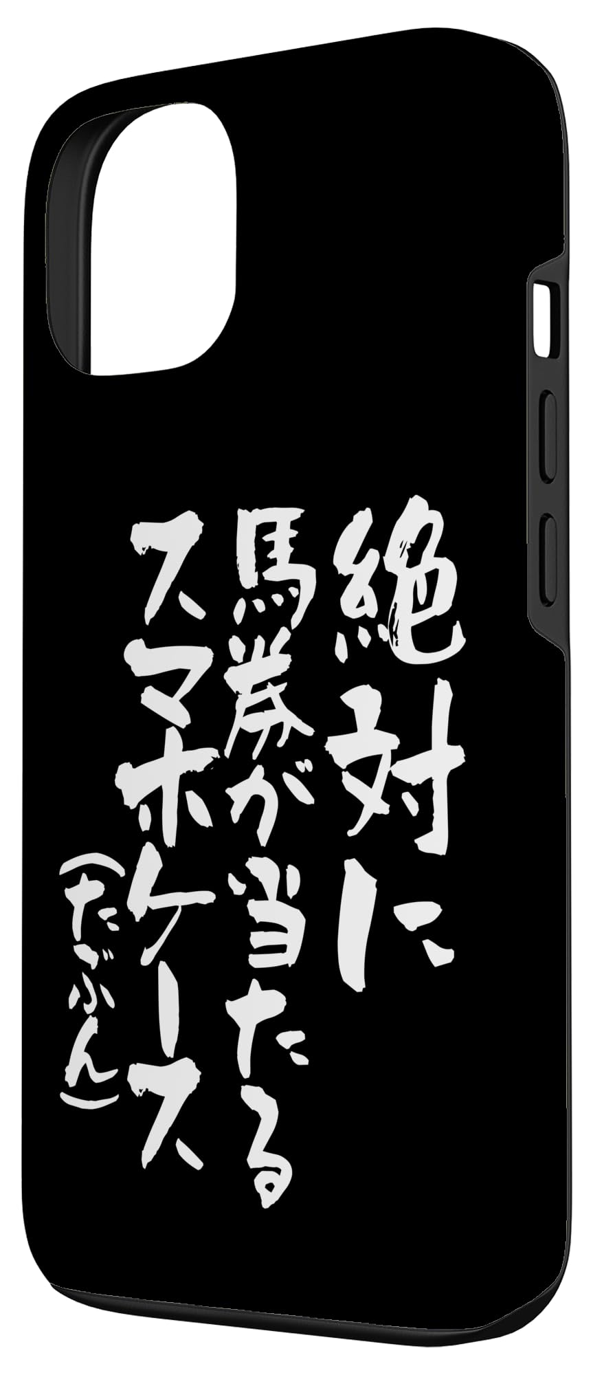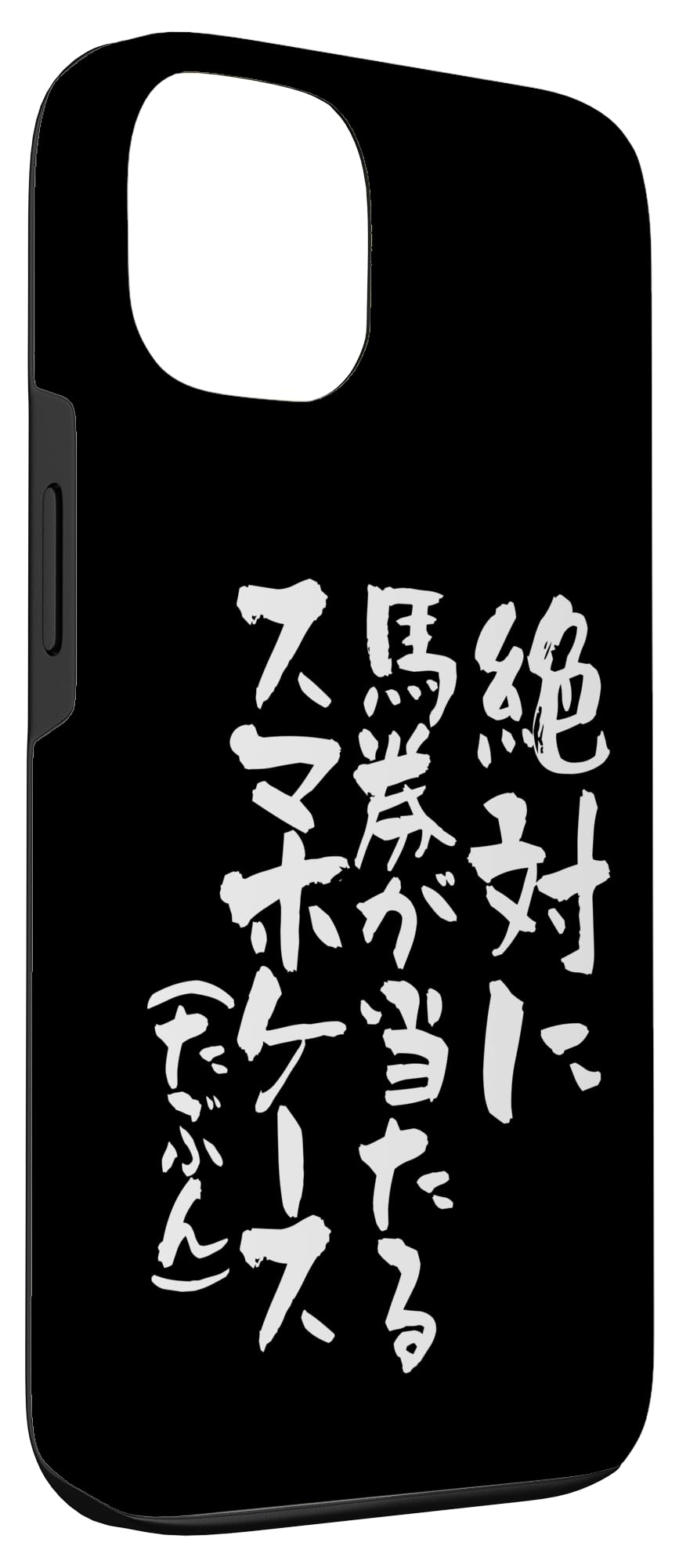 絶対に馬券が当たるスマホケースと筆文字で書かれてます。競馬場に行って馬やレースを見るのが好きな男性や女性にピッタリのスマホケースです。馬が好きなお父さんやお兄さん、息子さん、お爺ちゃんへの父の日や誕生日のプレゼント、還暦祝いや古希祝いにも適しています。学校や会社、家など、日常でも着けられるデザインとなっています。