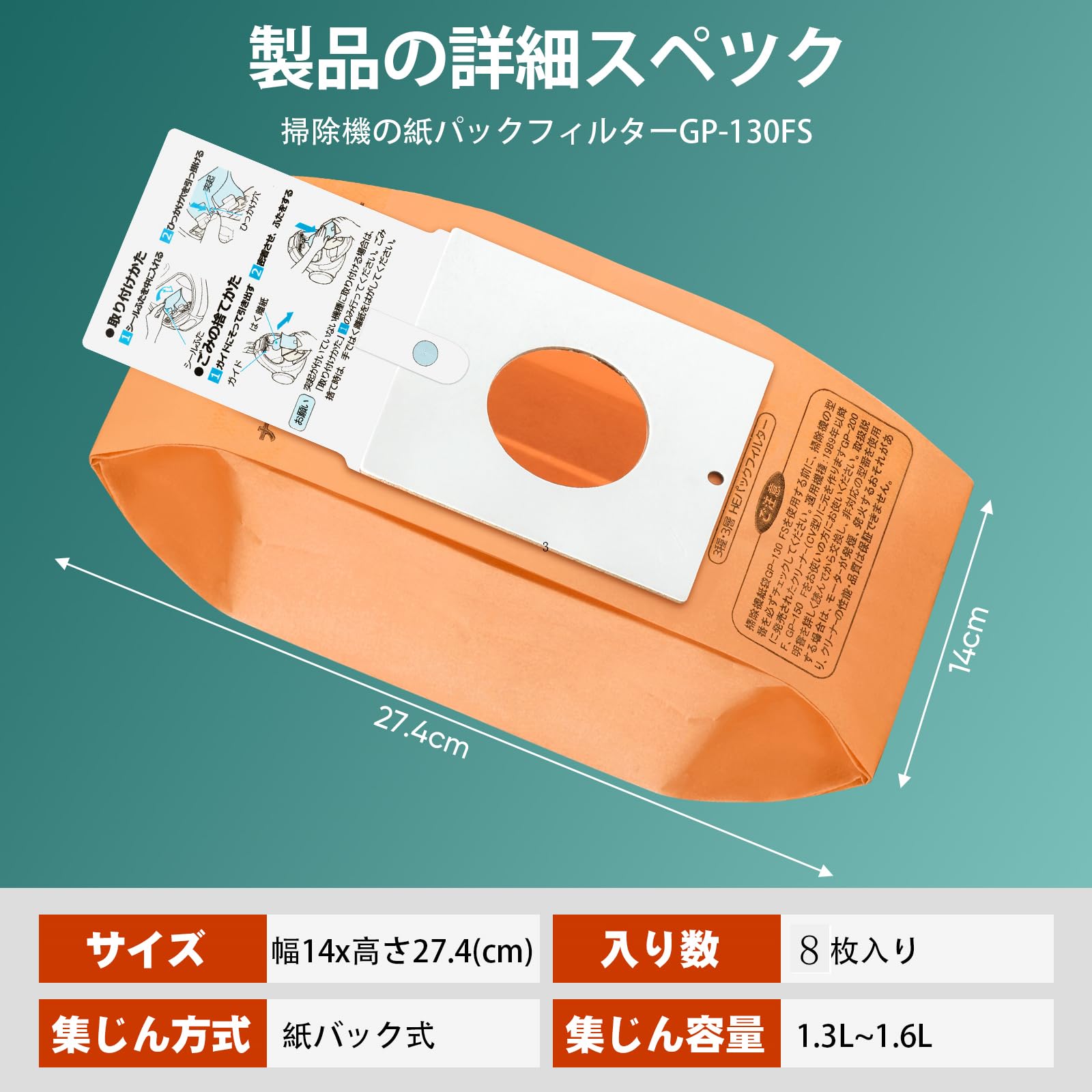 【人気】GP-130FS 日立 掃除機 紙パック互換製品 ごみ用 8枚入 抗菌消臭クリーンGP-75F、GP-110F、GP-2000FS、GP-150Fをお使いの方におすすめです 1989年以降に発売の紙パック 掃除機-(CV型)に使えま 吸込口シール付き 説明書 対応機種CV-PY300/ CV-PY30/ CV-PY20/ CV-PY9/ CV-PY8... (8枚入) | GIGATERA