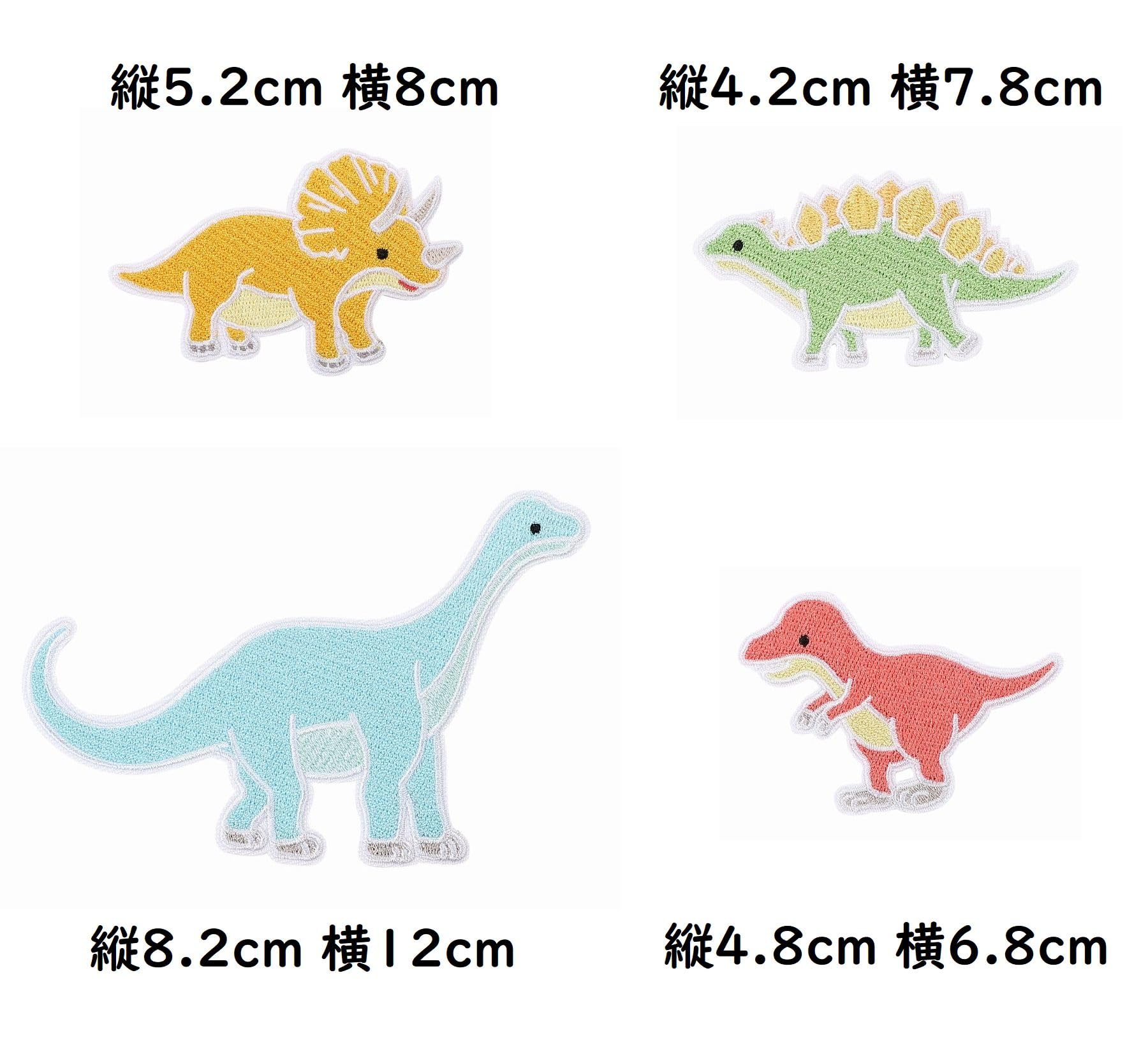 「アイロンワッペン 恐竜ワッペン アップリケ 7枚セットは、トリケラトプス(縦5.2cm×横8cm)、ステゴサウルス(縦4.2cm×横7.8cm)、ブラキオサウルス(縦8.2cm×横12cm)、