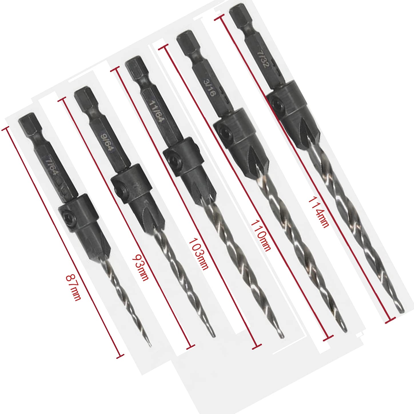 Wolfride 5本セット 木工ドリルビット 皿穴ドリルビット 六角軸 皿取り錐ドリルセット HSSドリルビット 穴あけ 面取りカッター diy 工具 レンチ付き