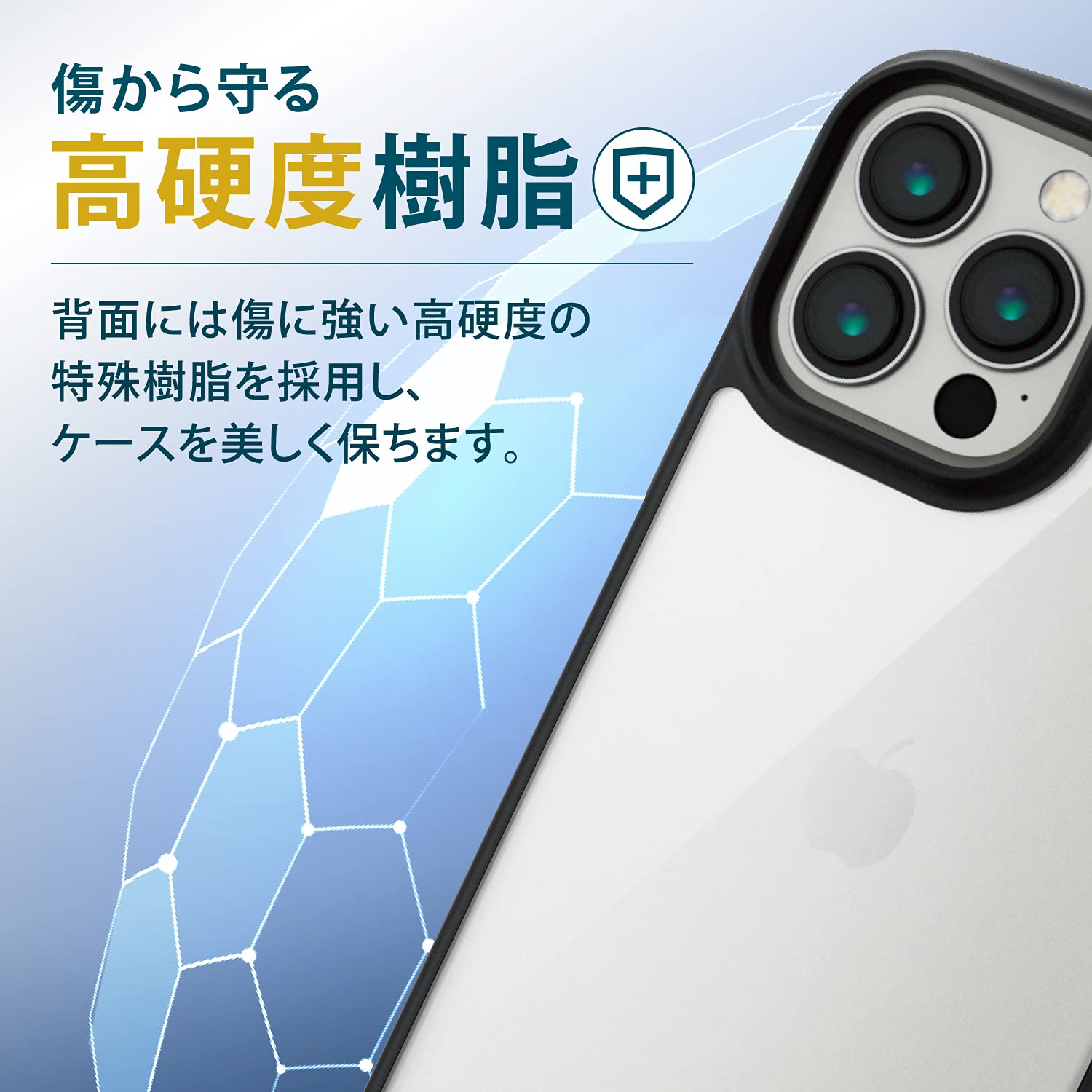 全周に配置した独自設計のエアクッションが衝撃を吸収し、背面には高硬度8Hの特殊樹脂を採用した、iPhone 13 Pro Max用TOUGH SLIM LITEケースです。