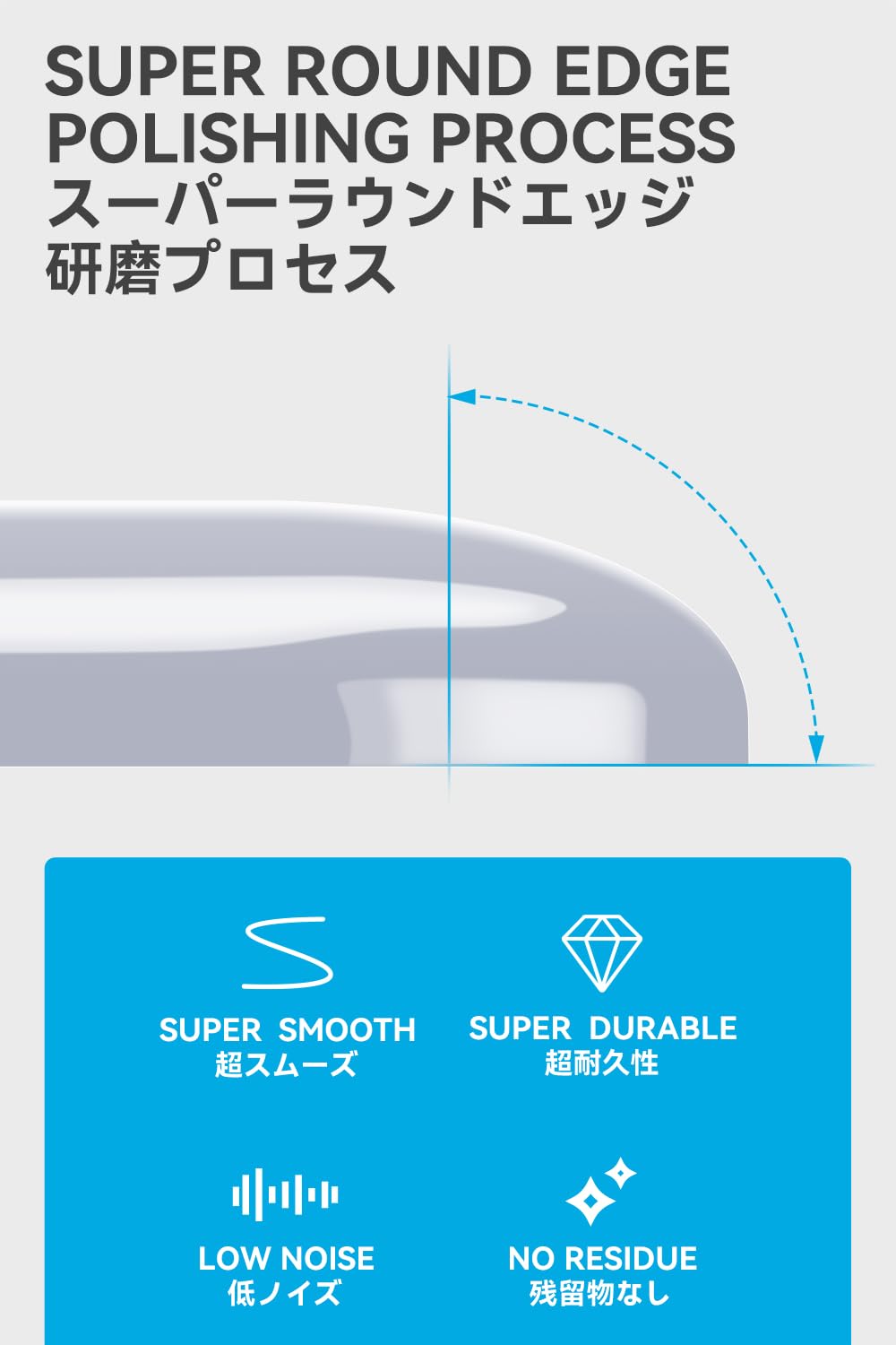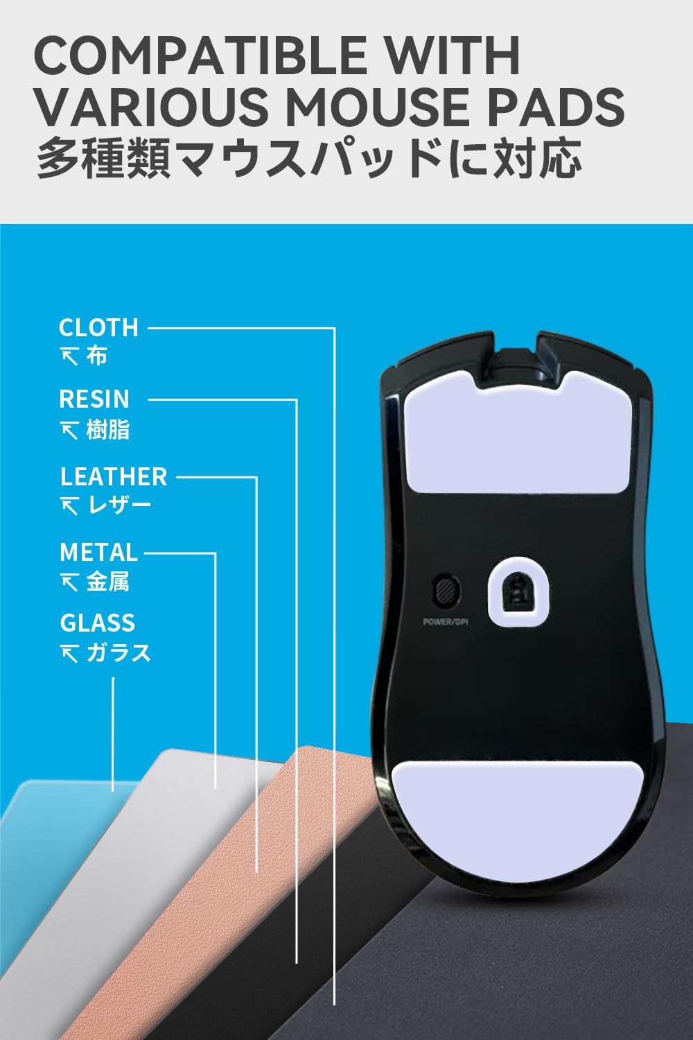 【ラウンドエッジ加工】: 独自なラウンドエッジデザインで、柔らかい布製マウスパッドでもソールの引っ掛かりがなく快適にお使い頂けます。各種類表面のマウスパッドに対応し、より快適、精度が高いマウス操作を実現します。