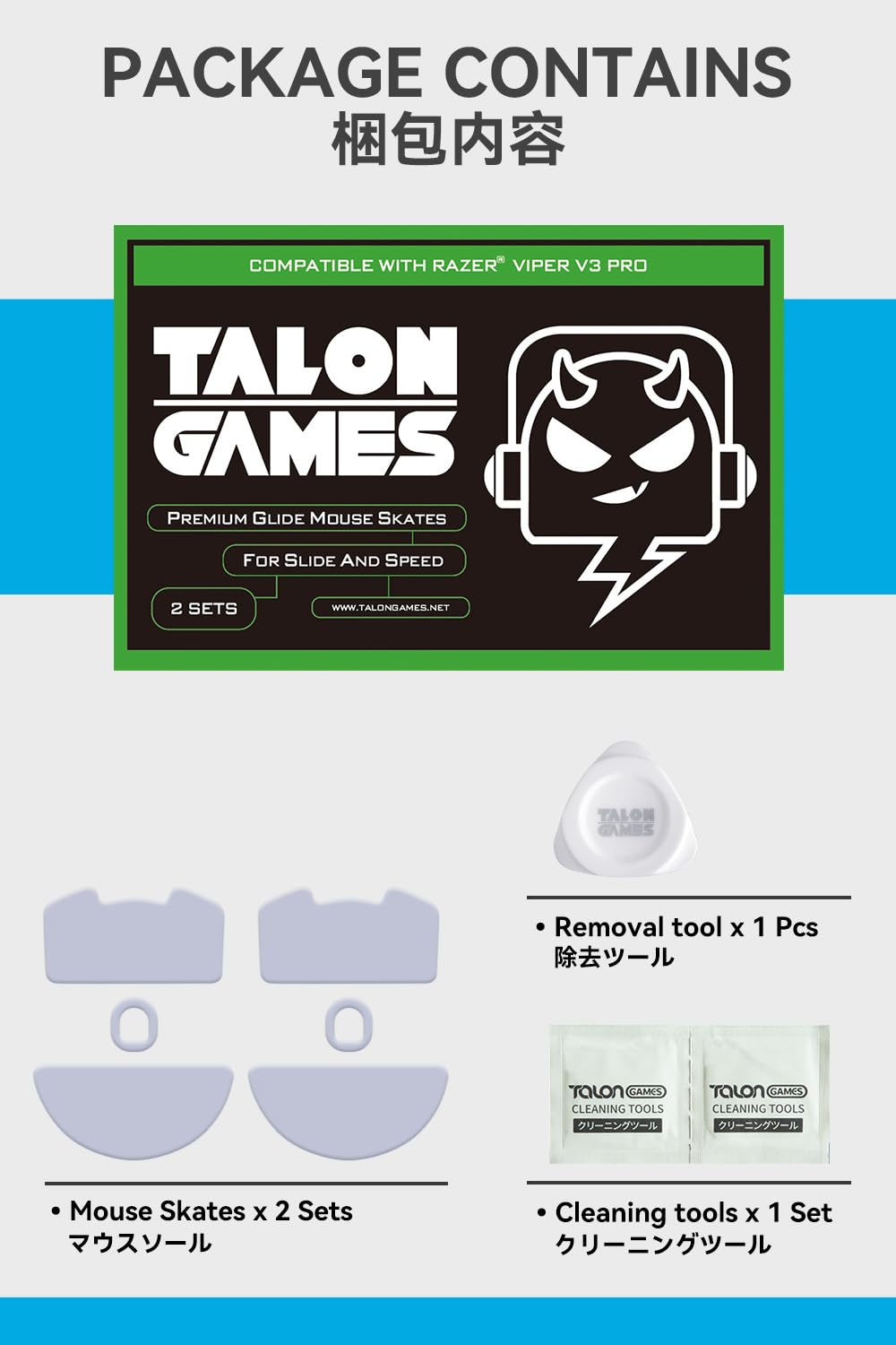 【特価】TALONGAMES マウスソール Razer Viper V3 Pro 用 2セット入り プレミアム グライド マウススケート マウスフィート 用 2sets 高耐久 超低摩擦 Super Smooth 交換用【国内正規品】 | GIGATERA