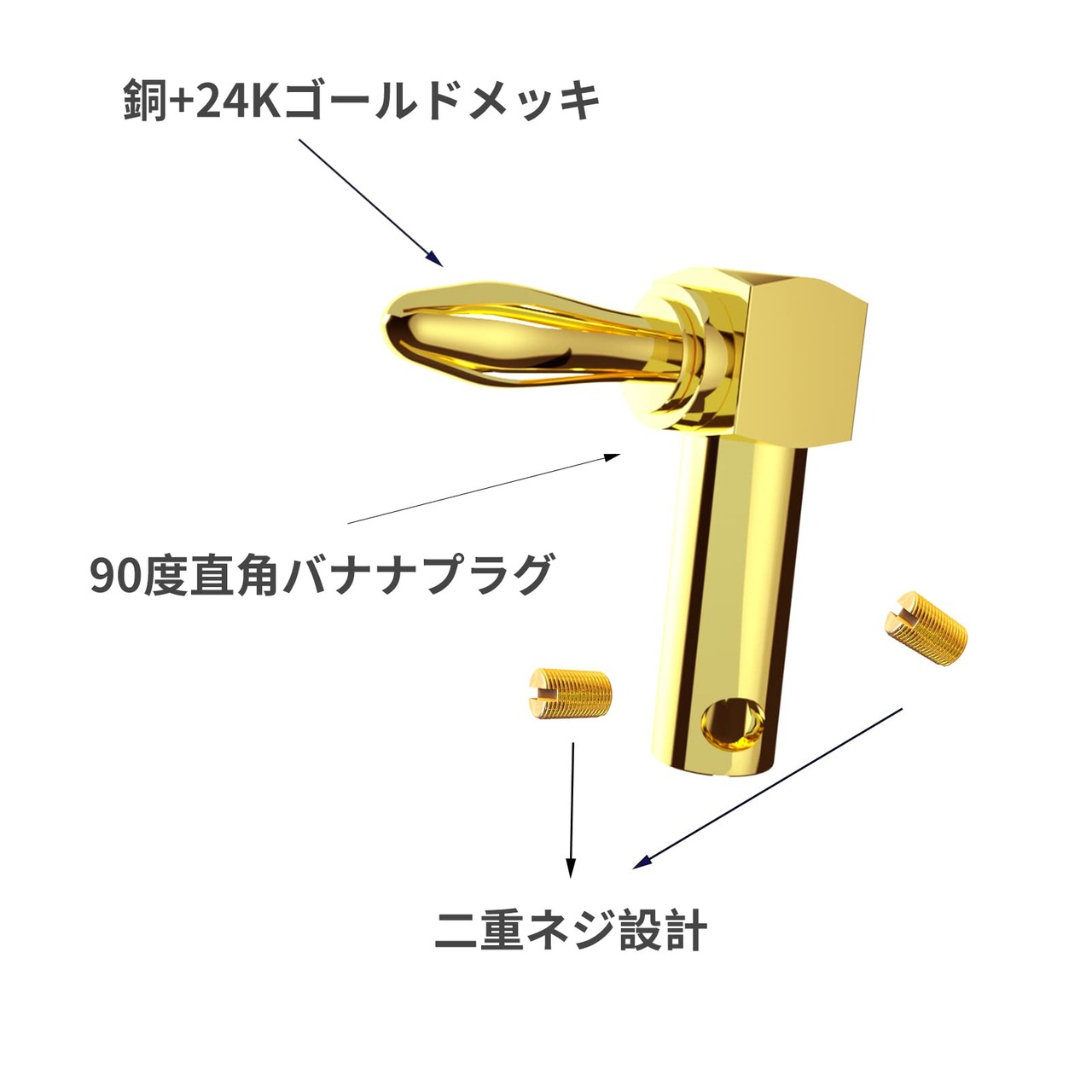 【数量限】l型 バナナプラグ 24k 金メッキオーディオコネクタ スピーカーターミナル 接続 ゴールド L型 コネクタ ケーブ オーディオ バナナプラグ スピーカー端子 スピーカープラグ 8本セット | GIGATERA