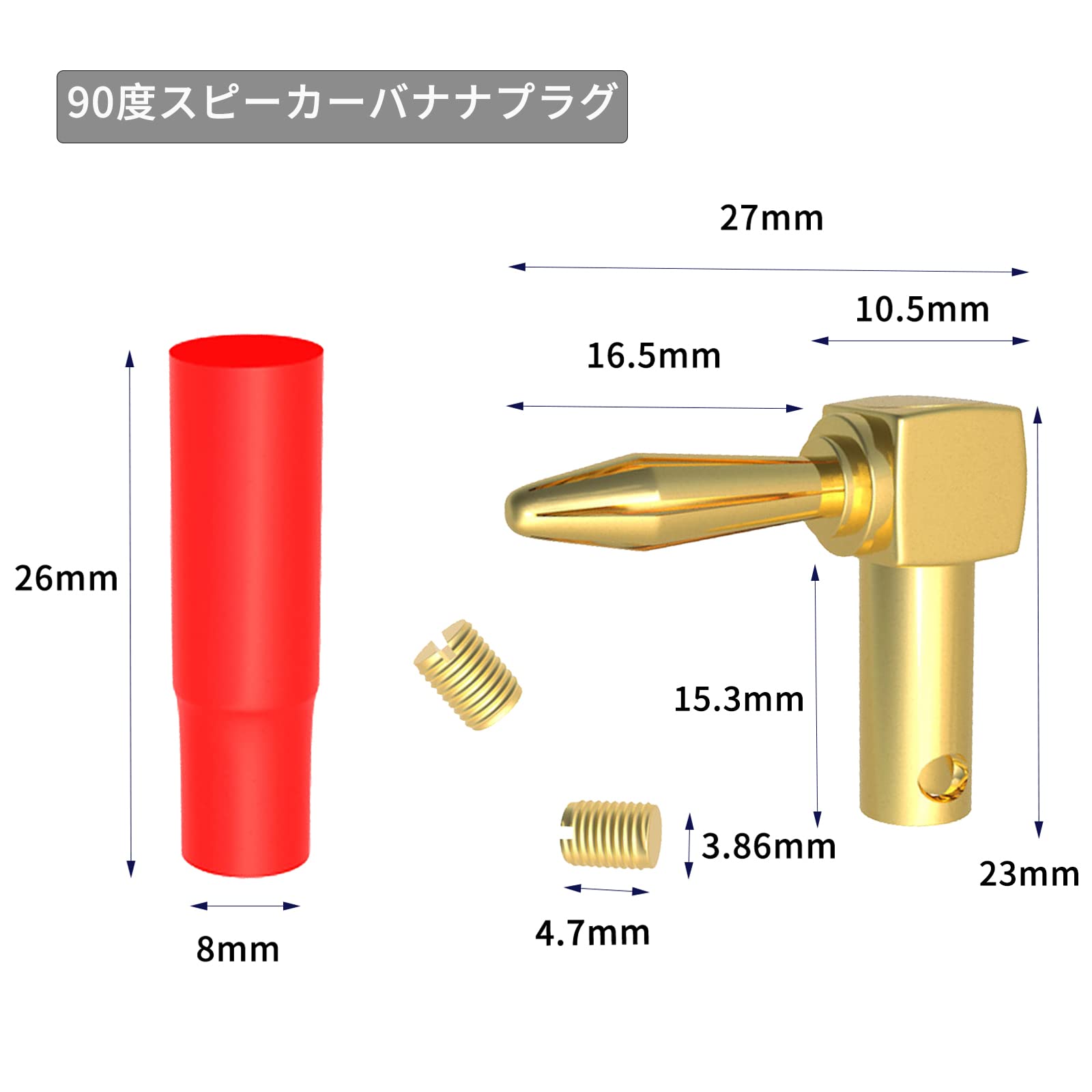 l型 バナナプラグ 24k 金メッキオーディオコネクタ スピーカーターミナル 接続 ゴールド L型 コネクタ ケーブ オーディオ バナナプラグ スピーカー端子 スピーカープラグ 8本セット