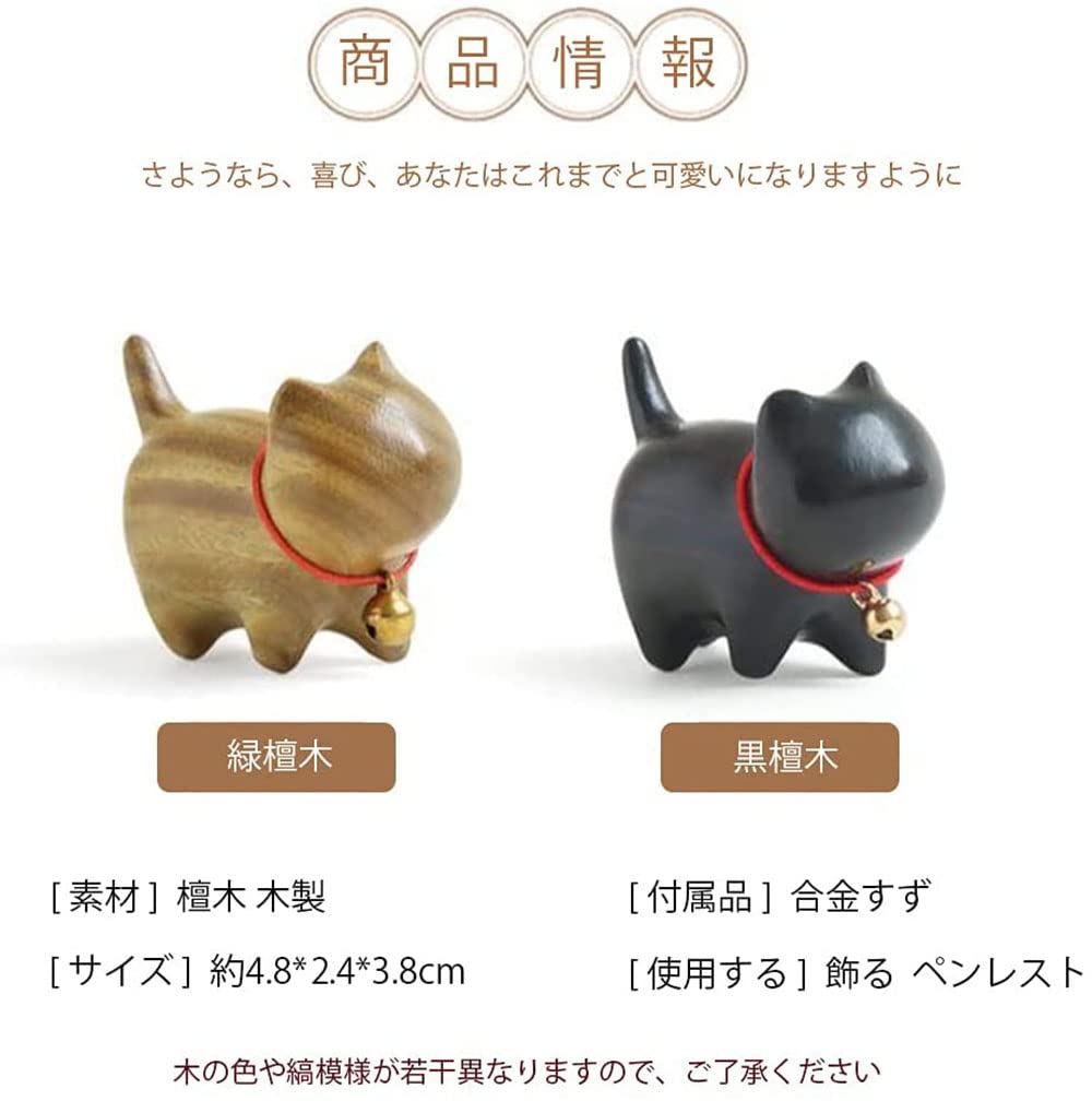 WOWTAC 猫 置物 玄関小物 インテリア飾り 木製招き猫 幸運 招き 誕生日プレゼント (緑檀)
