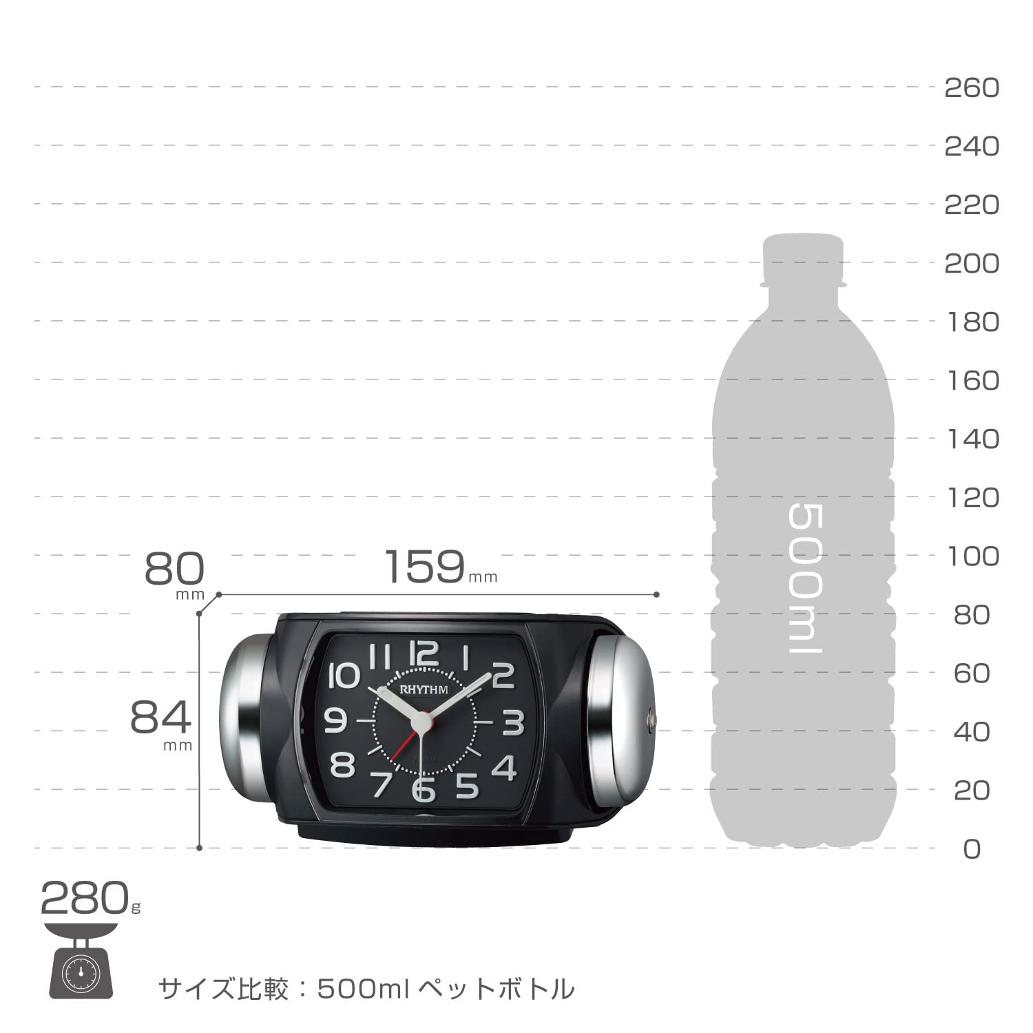 アラーム:大音量ベル音(大⇔小)切替式 (スマートな大音量ベル音目覚まし時計です。音量(大・小)切り替え式です。音の静かな連続秒針で秒針音が気になりません。)