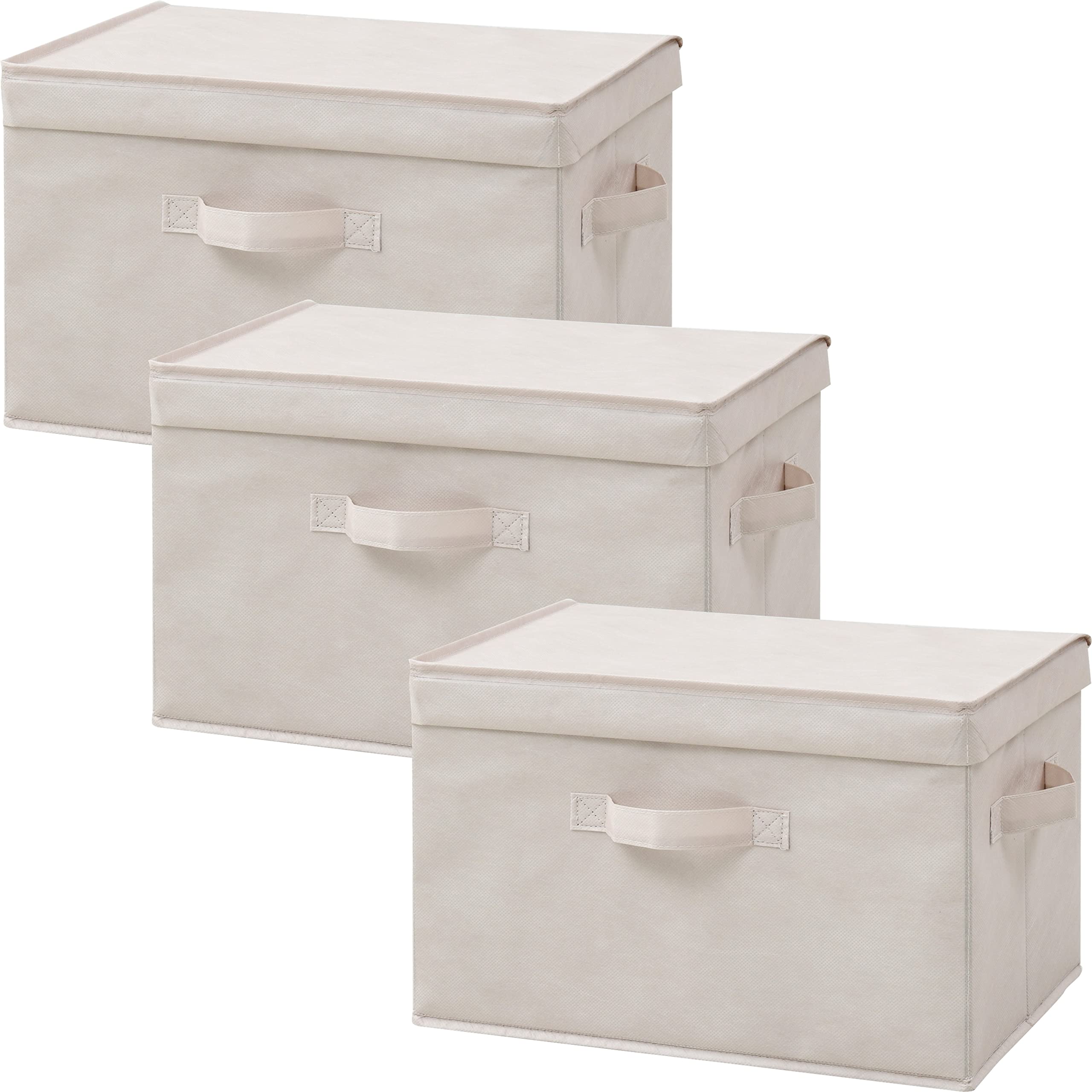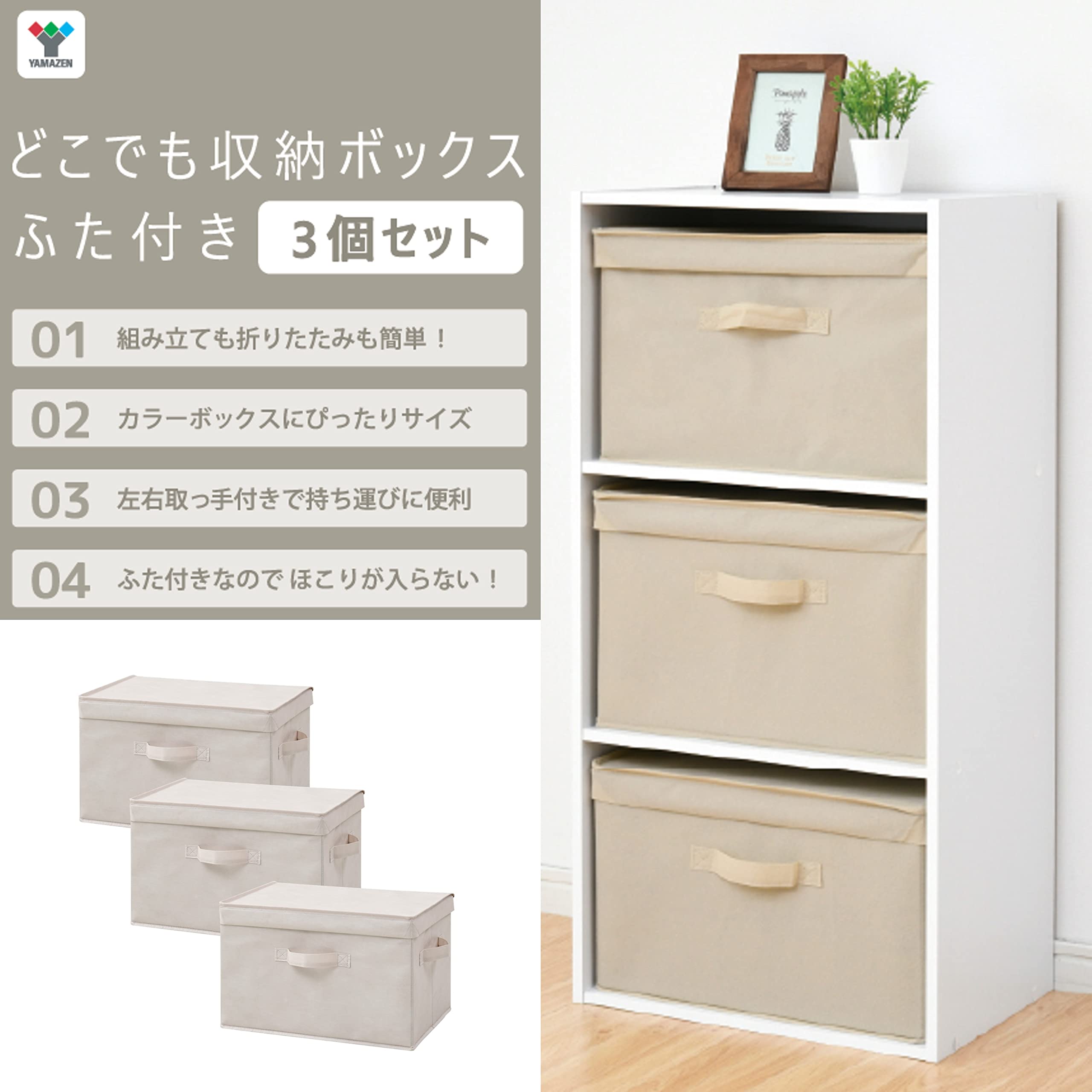 山善(YAMAZEN) ふた付き 収納ボックス 3個組 カラーボックス対応 取っ手付き 幅38×奥行25×高さ25cm 完成品 ベージュ YNF2-3PF(BE)