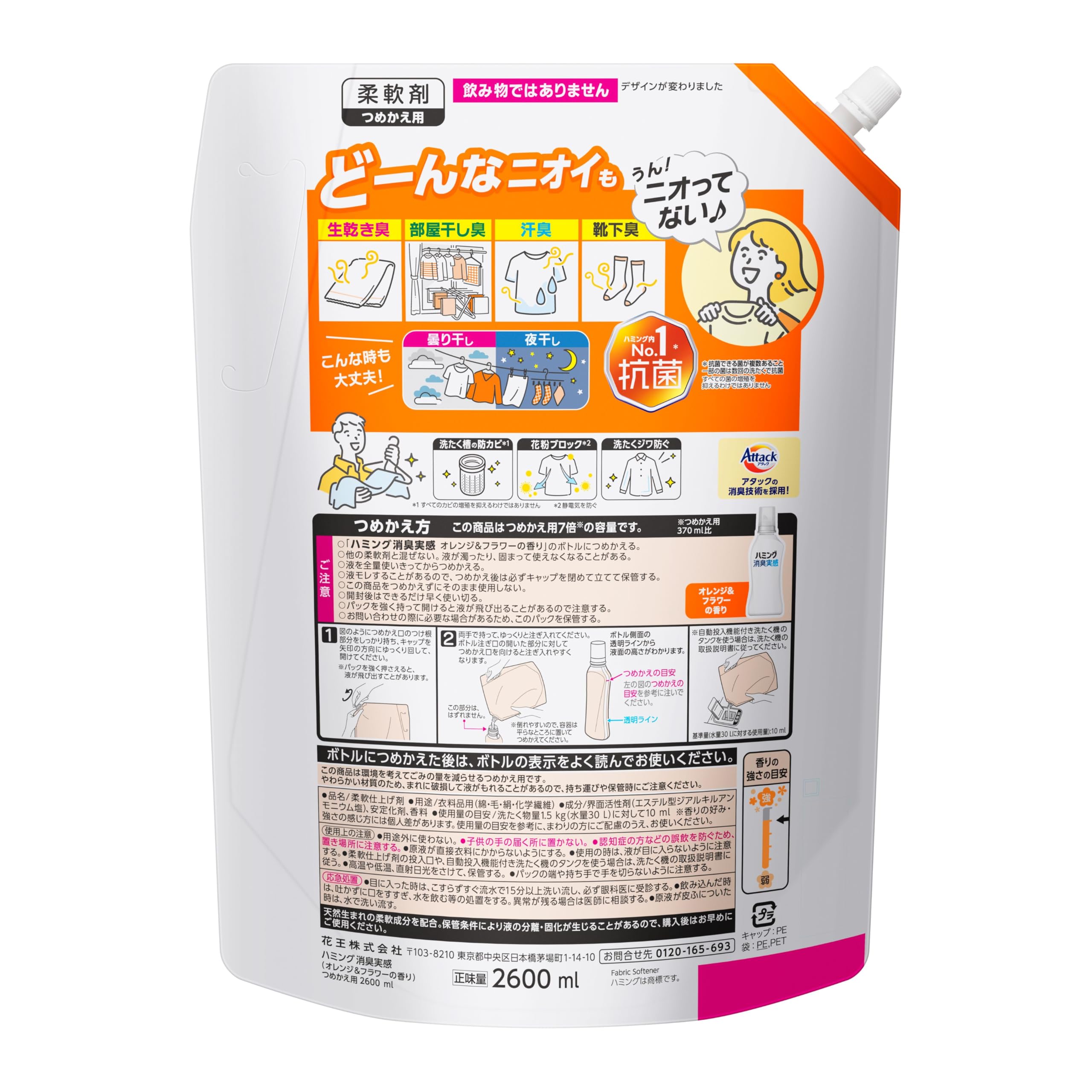 ハミング 【大容量】消臭実感 柔軟剤 つめこみ洗いも、部屋干しも、無敵消臭! 内No.1抗菌 オレンジ&フラワーの香り つめかえ用 2,600ml