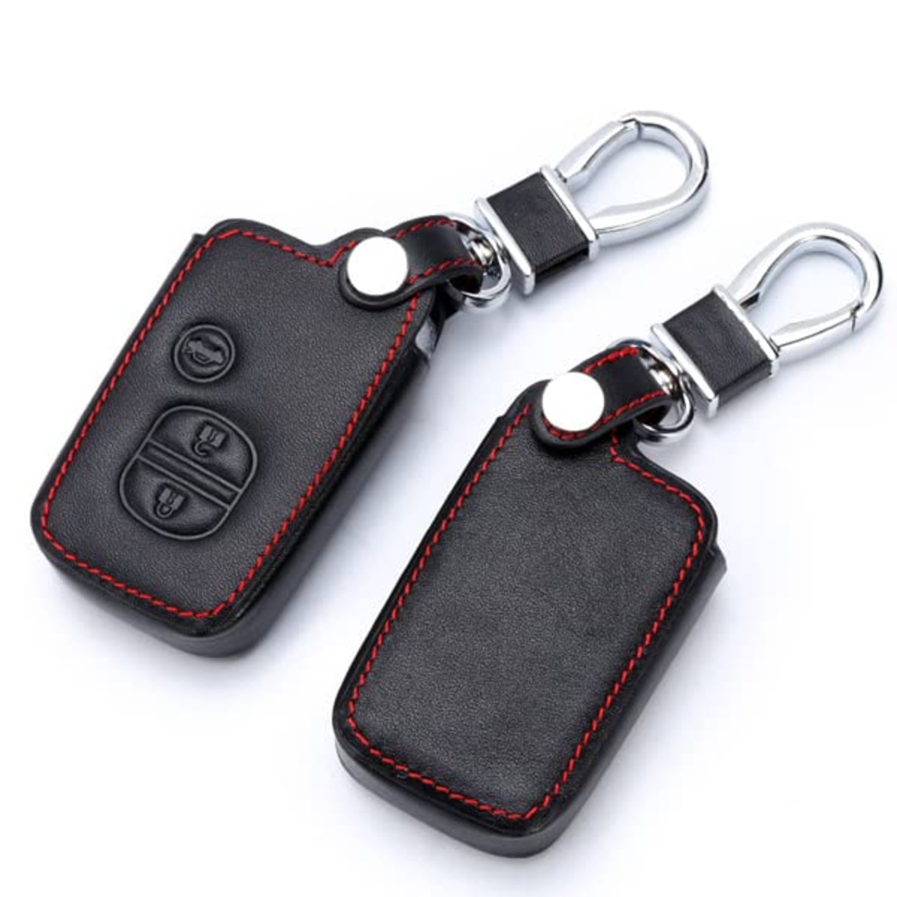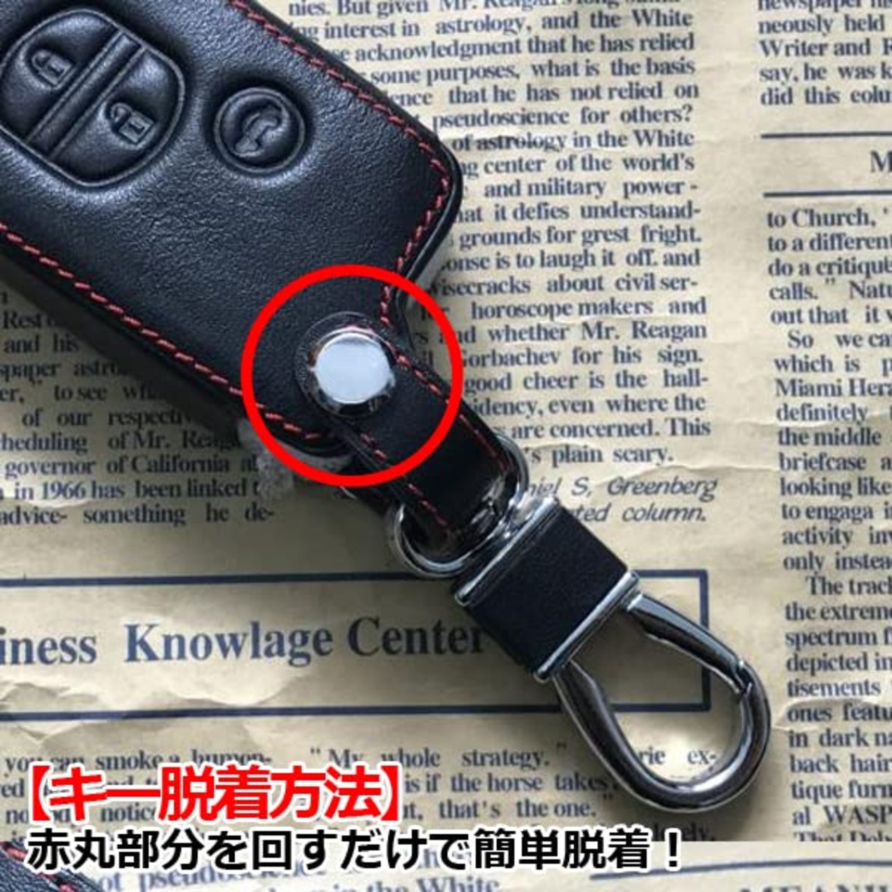 本革 レザーキーケースです。 ■専用設計のため、ぴったりフィット! ■内側には本革レザー、外側は汚れに強いPUレザーを使用! ■ボタン部分は刻印が打刻されており、しっかりとした凹凸のある造り! ■カラビナ付きで、そのままベルトループやバッグなどに取り付け可能! ■ブラックレザー×レッドステッチで高級感を演出! 【カラー】 ブラックレザー×レッドステッチ 【適合】 プリウス PRIUS プリウスα PRIUSα ヴィッツ Vitz アクア AQUA SAI ラクティス Ractis マークX Mark X ランドクルーザー 200系 Land Cruiser iQ アベンシス AVENSIS カローラ COROLLA カローラ フィールダー COROLLA FIELDER カローラ アクシオ COROLLA AXIO など ※画像のキー形状であれば適合します。