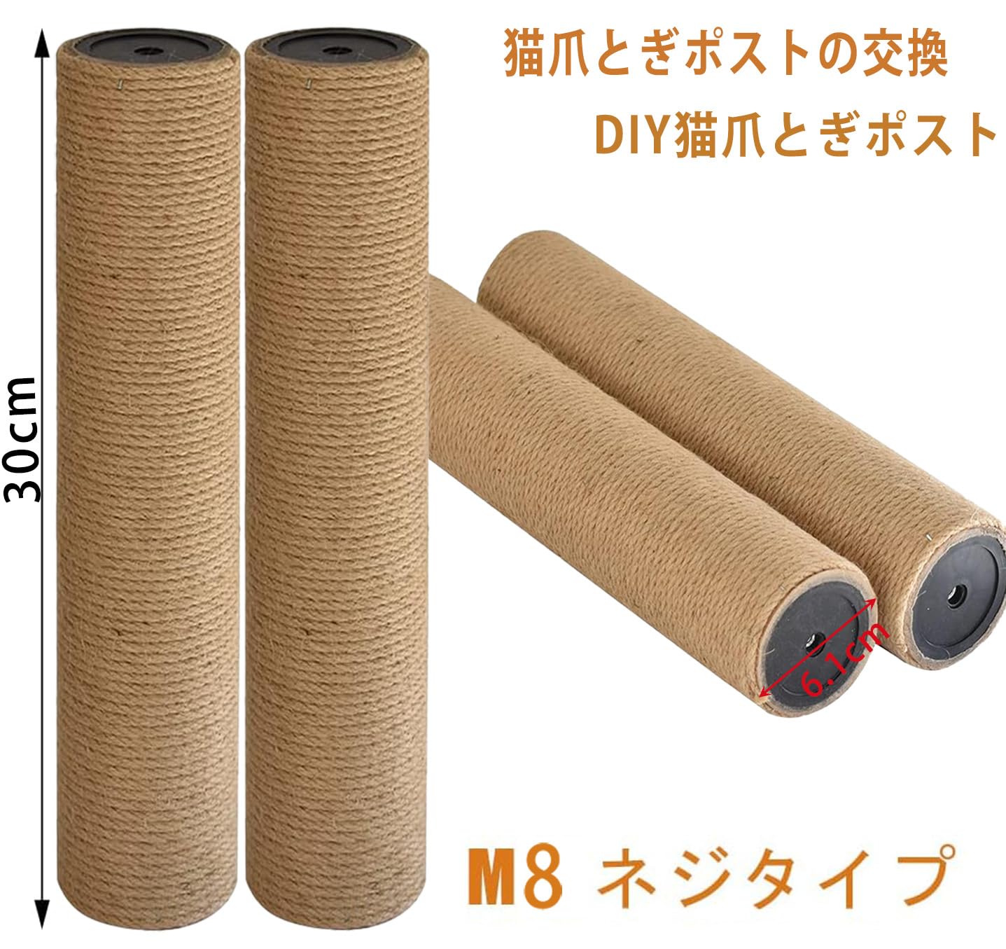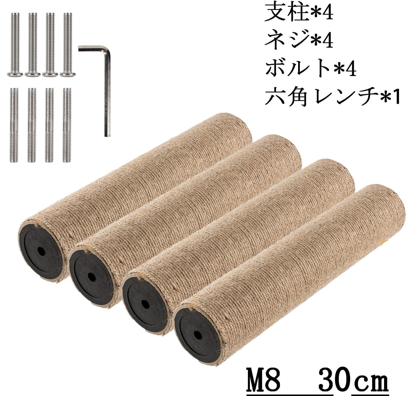 爪とぎ ペット用品 キャットシリーズ 交換用 支柱 替え 交換 麻柱 (30cm*4本, M8)