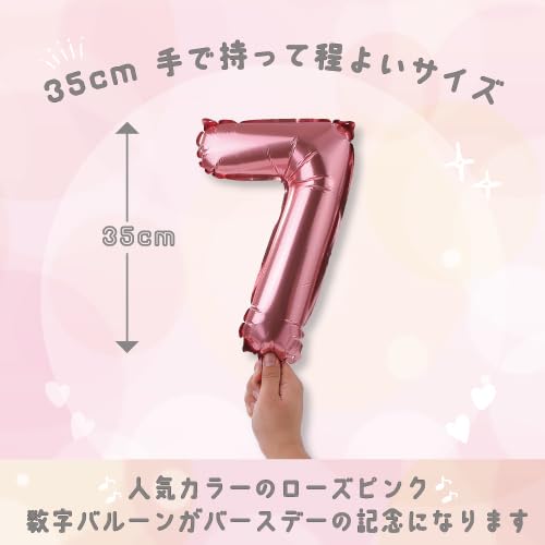 【風船屋】7歳 数字バルーン バースデー サプライズ プレゼント バルーン 誕生日 飾り付け ピンク 女の子 女子 デコレーション かわいい (7歳)