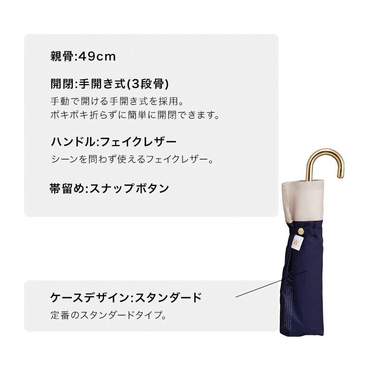 Wpc. 雨傘 折りたたみ傘 切り継ぎプレーン ミニ ネイビー 晴雨兼用 親骨49cm 160g 軽量 レディース バイカラー おしゃれ 可愛い 無地 フェミニン 持ち手 ゴールド 通勤 通学 9095-014-002