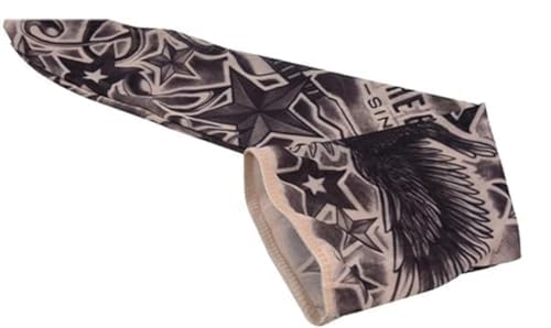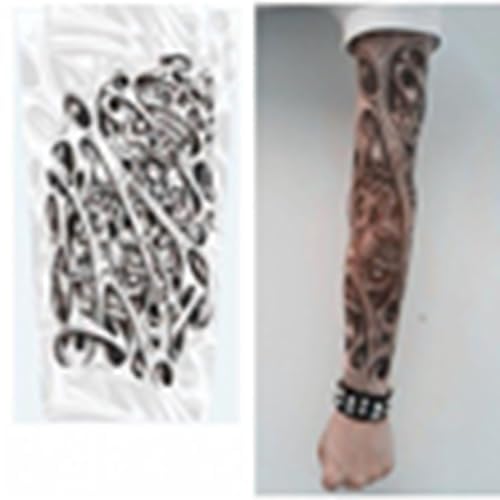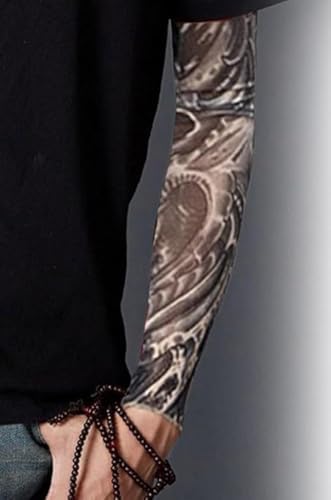 装着するだけでワイルドなオーラを放つ変身アイテム 装着10秒!あっという間に、野性味あふれるタトゥーを体験できるアイテムです。 装着して片腕を露出する事によって、煽られなくなったと感謝の手紙まで頂きました。素材がナイロンにスパンデックス(ポイウレタンの弾力繊維)が入っています。 フリーサイズ 平置き寸法:幅約7cm〜11cm 全長約47cm 伸縮性に優れたスパンデックスを使用することで装着感がより快適になりました。 2枚セットですので、両腕に付けても違和感無く、また、カップルで片腕ずつの装着でも楽しいですね! 手触りは、ナイロンストッキング様で、滑らかな肌触りで、また、軽く薄くて通気性がいいいメッシュなので、 蒸れ知らずで、汗も吸水してすぐ乾燥します。 爽やかで気持ちのよいつけ心地です。 動かしても、自然と腕にフィットしますので、他人からはまるでホンモノのタトゥーを入れた腕のように見えます。 手首の繋ぎ目は、腕時計やブレスレットで隠すのが良いでしょう。 洗濯はネットに入れたり、手洗いをすれば繰り返し使用可能です 弾力性を維持するために、熱水と強アルカリ性洗浄剤の使用はお控え下さい。