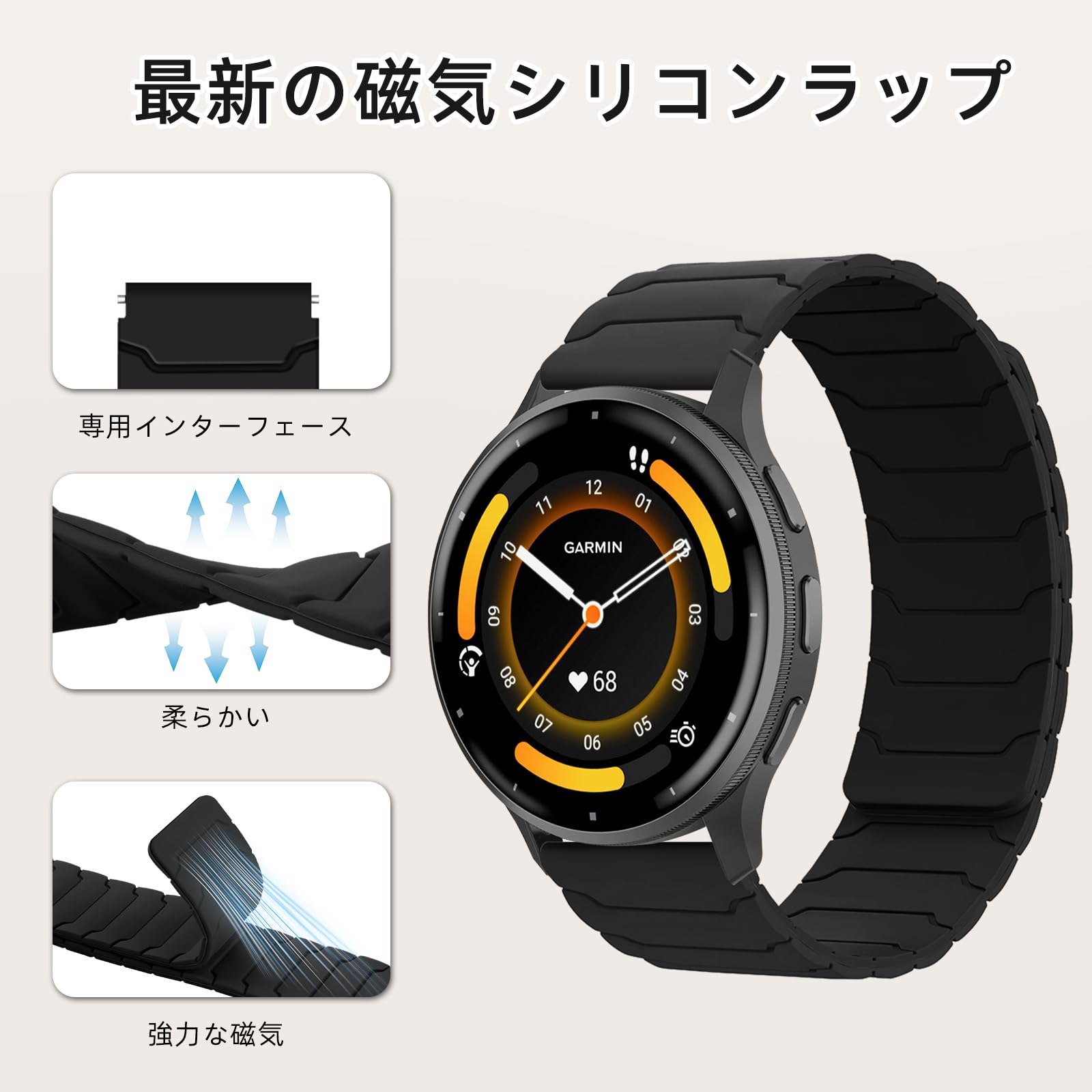 【人気】[Hinnwer] 22mm バンド Garmin Venu 4/3 45mm/vivoactive 4/Venu 2/Active 対応 ガーミン バンド 磁気シリコン 時計ベルト スポーツ バンド 柔らかい 防水 替えバンド 長さ調節 交換ストラップ Garmin Forerunner 570 47mm/Forerunner 265/255/255 Music 用 (ブラック) | GIGATERA
