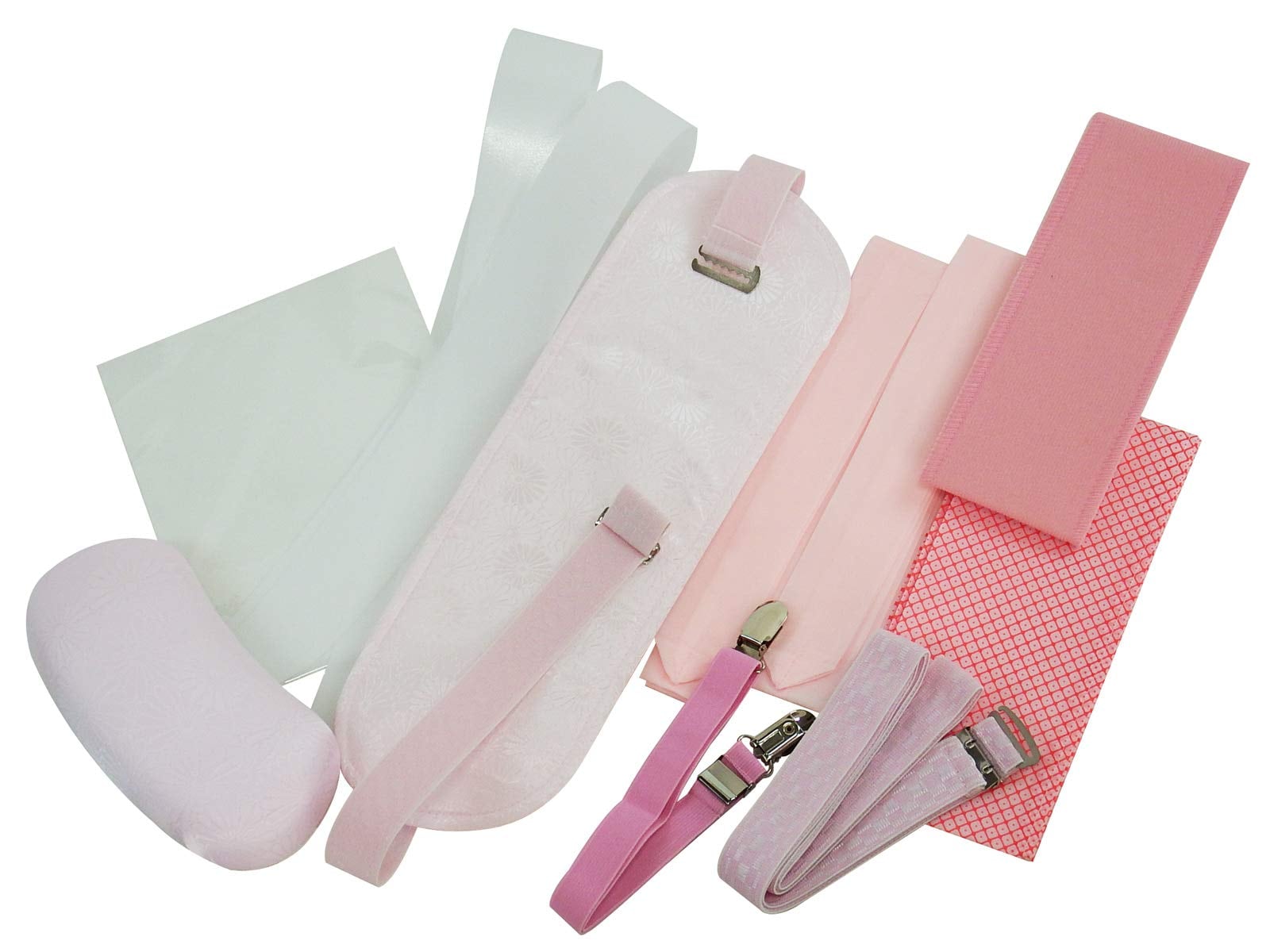 【在庫処分】[きもの屋 さらさ] 和装小物 着付け小物11点セット ベルト付前板 伊達締め マジックベルト 着物ベルト ウエストベルト 帯枕 腰紐2本 衿芯2本 半衿 ホワイト/ピンク | GIGATERA