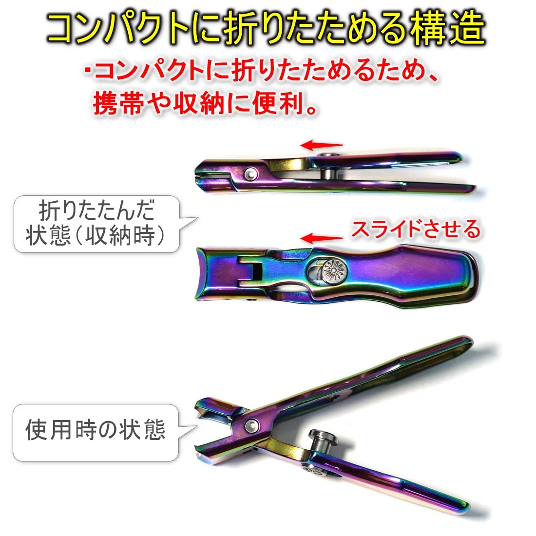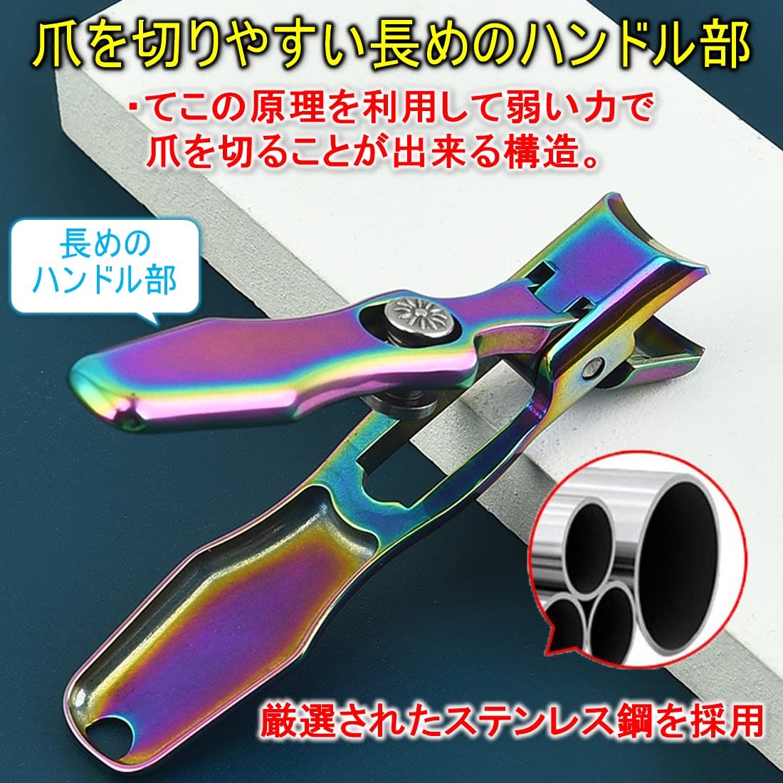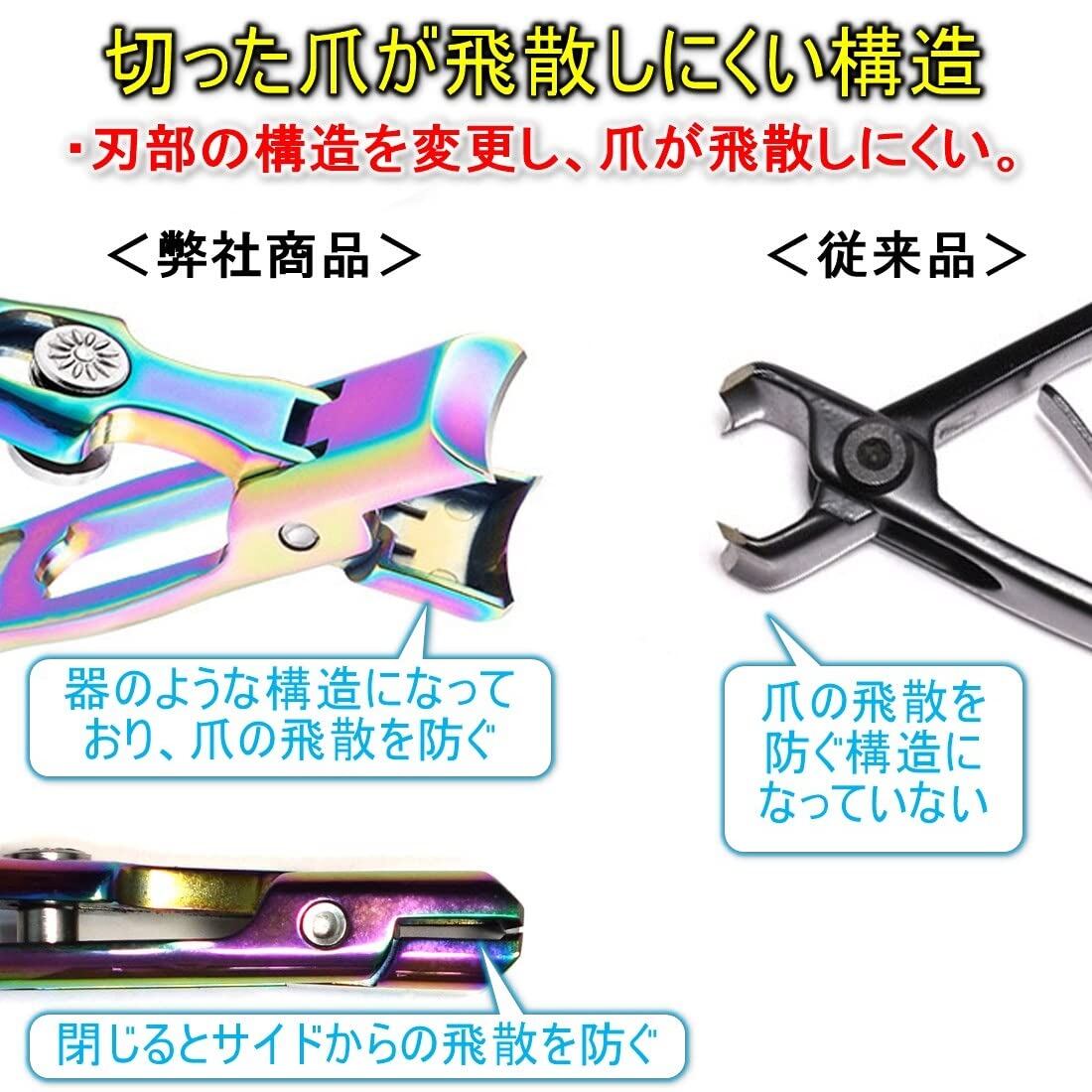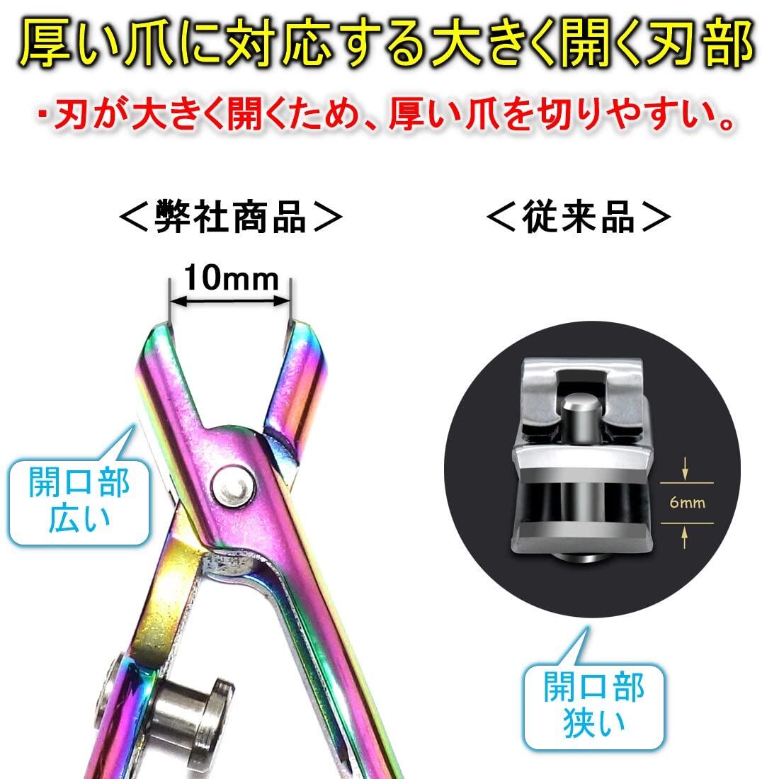 [TKhits] 爪切り 足用 つめきり [大きく開く爪切り] 足の爪 厚い爪 よく切れる 飛び散らない 足 老人 介護 (レインボーカラー)