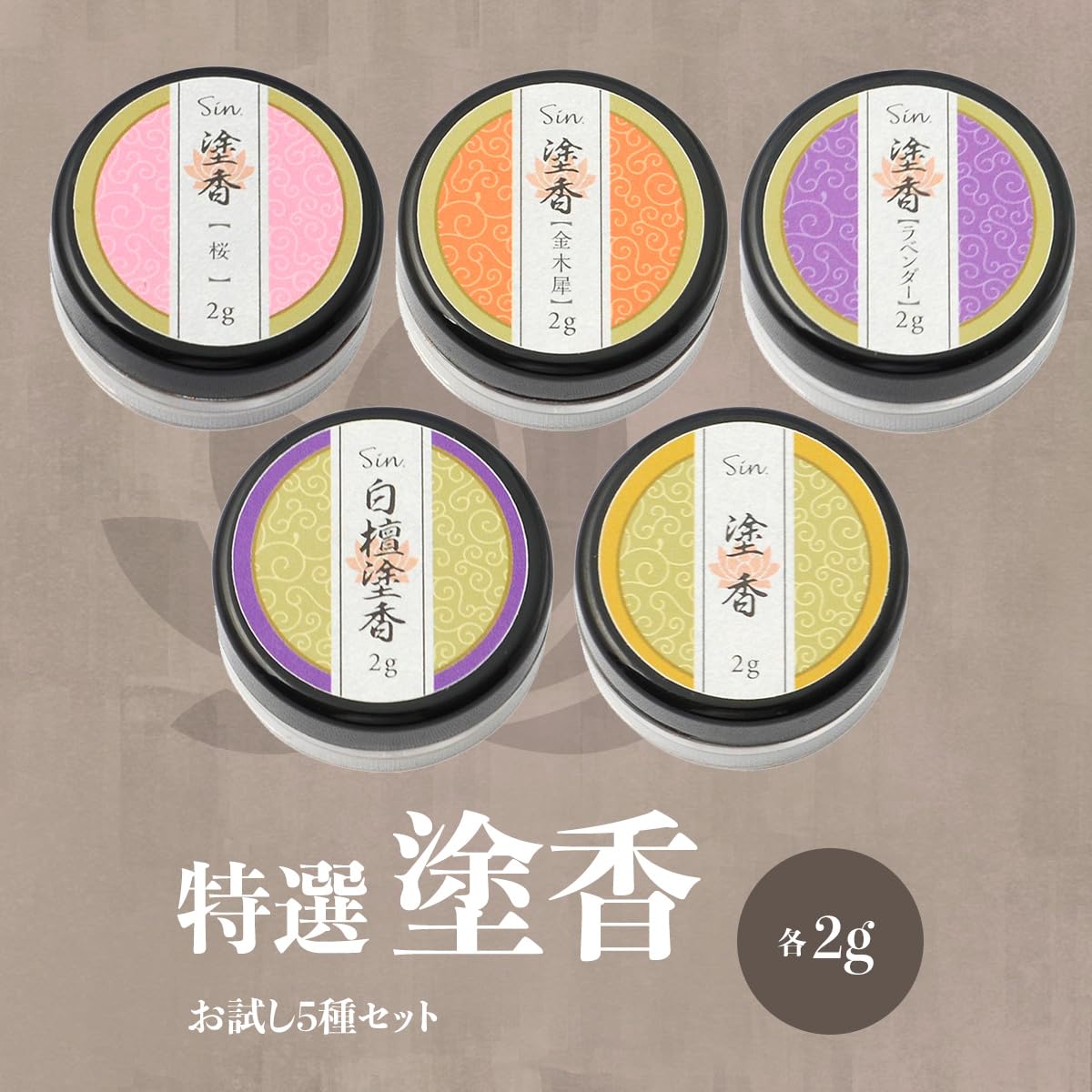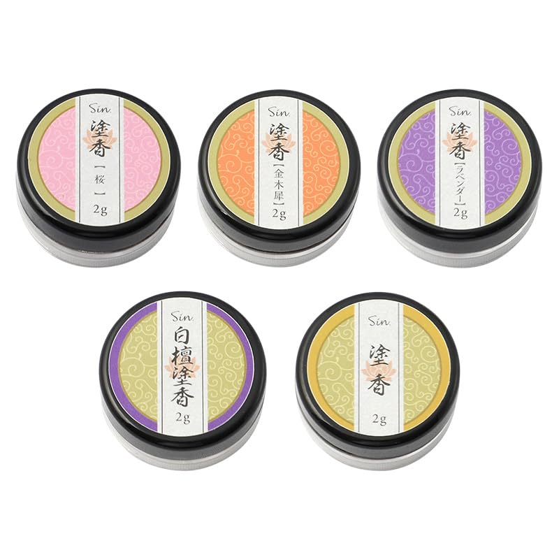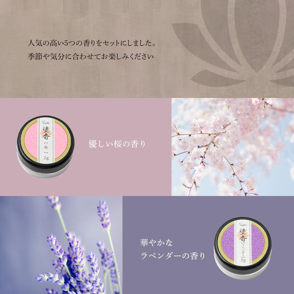 日本製 特選 塗香 2g 5種セット (白檀、クラシック、金木犀、ラベンダー、桜)