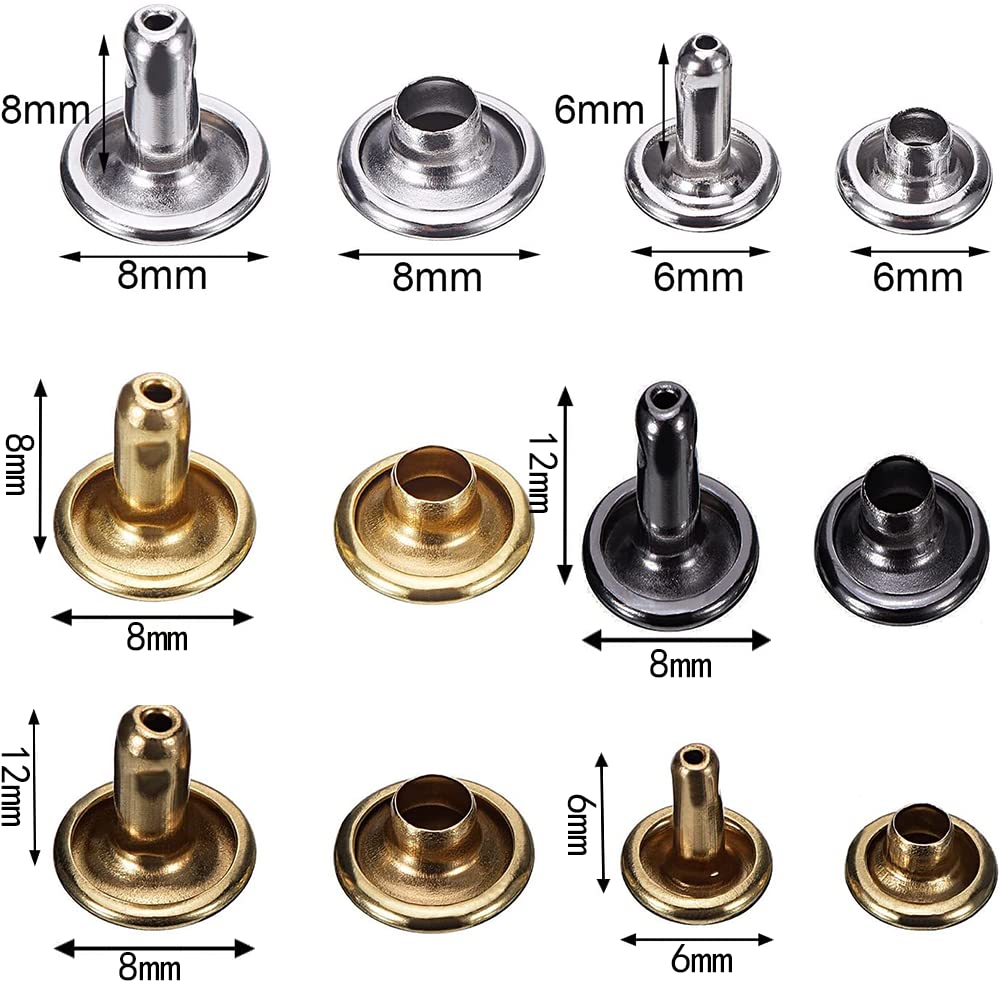 【使いやすい】このカシメ金具は手芸、修理用スタッズ セットです。手芸用スタッズセットで、6/8/12mmのスタッズを取り付けるのに便利な工具とスタッズのセットです。使い方も簡単なので、初心者からプロまで、革製品やハンドメイド作品のデコレーションに気軽に使えます。
