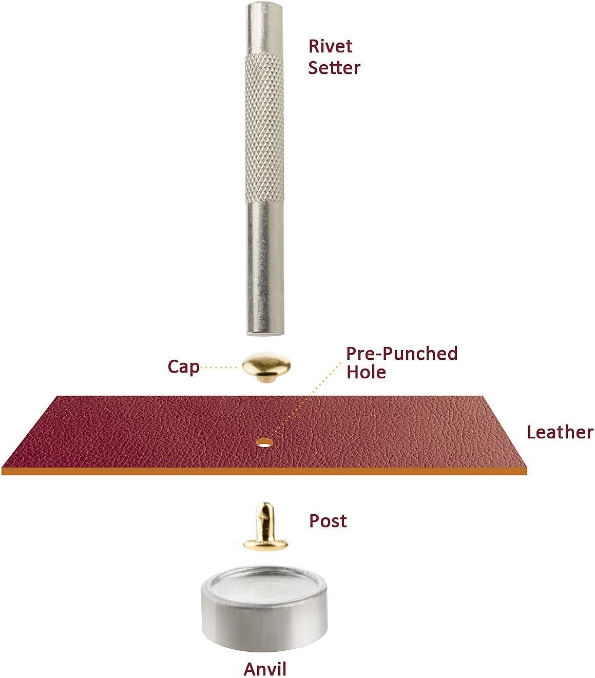 【高品質】カシメセットはスタッズは丈夫で耐久性が強い銅材料で作られて、穴あけパンチ、打ち棒は高品質の炭素鋼素材で作られています。輝いています、華やかなで仕上がりが美しい印象を与えてくれる。レザー工芸品はきれいに見えます。鞄に付けるなら何度も開け閉めをするので丈夫で長持ちする金属製のスナップボタンがよい、光沢もあります、レザー工芸品はきれいに見えます。