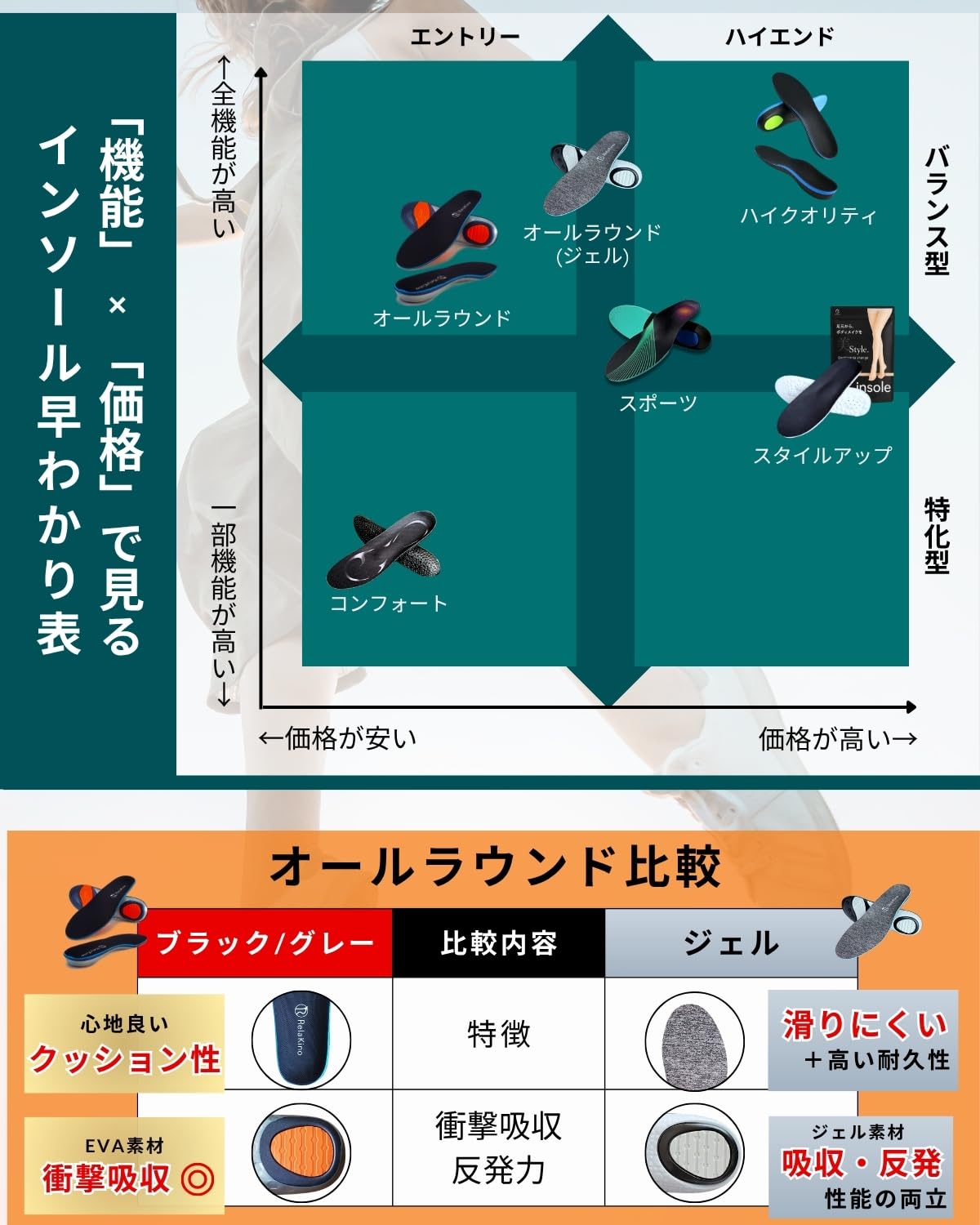 【十分な基本性能】 衝撃吸収、滑りにくい、グリップ性、消臭、軽量の基本性能を備えた中敷きになっています。男女兼用で運動以外に立ち仕事や日常使いでも活用できます。