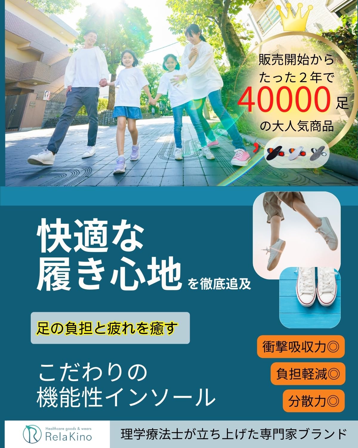 Rela Kino インソール [1日中快適] 理学療法士監修 中敷き 衝撃吸収 アーチサポート 男女兼用 (25.5-26.5cm, オールラウンド)
