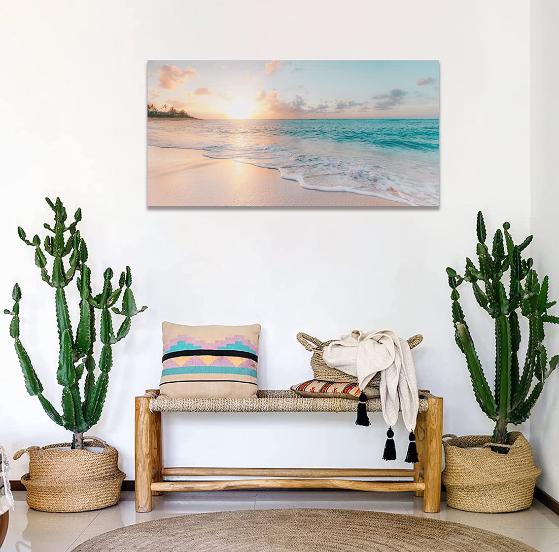 海の絵 アートパネル 絵画 海 ハワイ ポスター 風景画 壁掛け 室内装飾 木枠付きの完成品 (30x60cm x1Pcs)