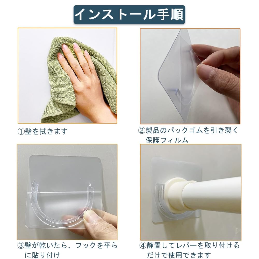 【簡単な取り付け】私たちの伸縮バーのスタンドは、複雑な取り付け手順は必要ありません。穴を開ける必要もなく、簡単な説明書に従って操作するだけで簡単に取り付けられます。壁を拭き、背面の保護フィルムを剥がし、押し付けて乾燥を待つだけで数分で完了します。