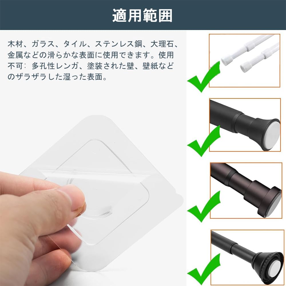 【強力な粘着剤】私たちの伸縮バーのスタンドは、強力な粘着剤を採用しており、しっかりとサポートが固定されます。ガラス、タイル、ステンレス鋼などの滑らかな表面でも、伸縮バーをしっかりと固定し。