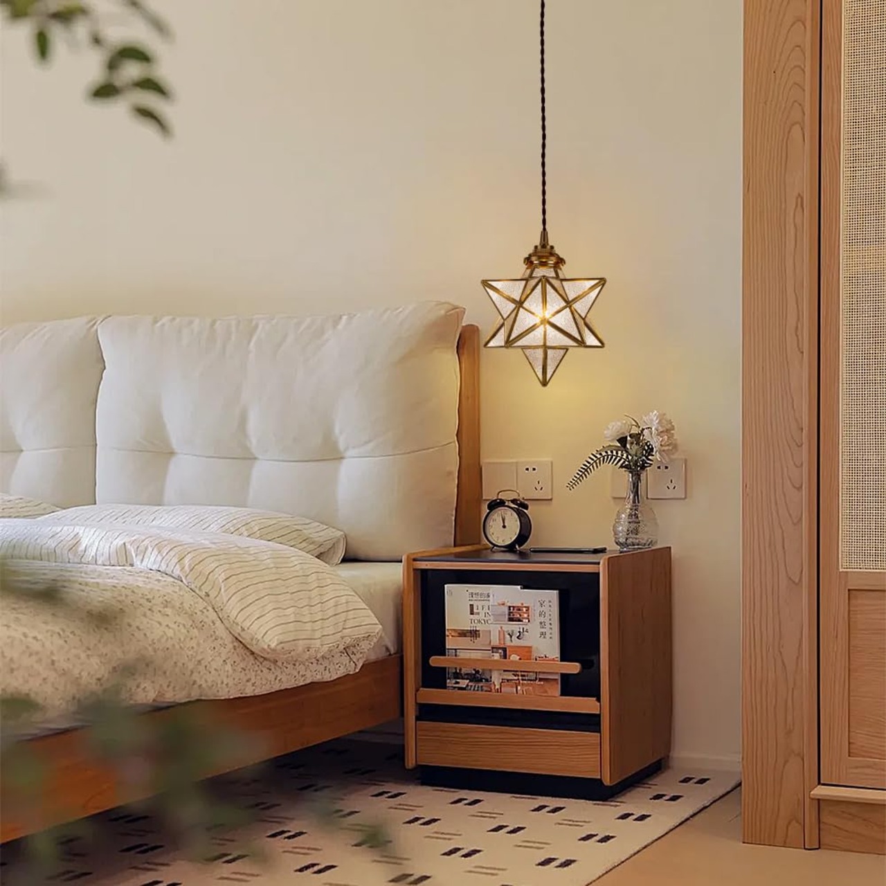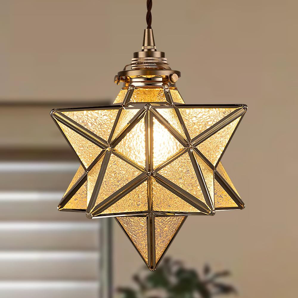 Cerdeco 幻想的に広がる星のシルエット ペンダントライト 天井 照明 吊り下げ照明 雰囲気たっぷりな影 1灯 真鍮&ガラス インテリア照明 手軽に贅沢 星形 引掛けシーリング (すりガラス) PDT46
