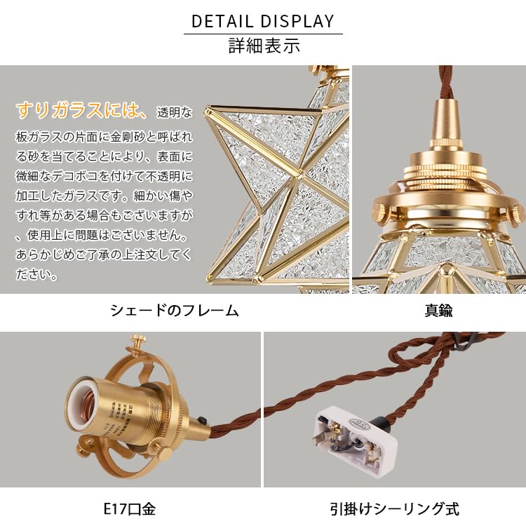 【特価】Cerdeco 幻想的に広がる星のシルエット ペンダントライト 天井 照明 吊り下げ照明 雰囲気たっぷりな影 1灯 真鍮&ガラス インテリア照明 手軽に贅沢 星形 引掛けシーリング (すりガラス) PDT46 | GIGATERA