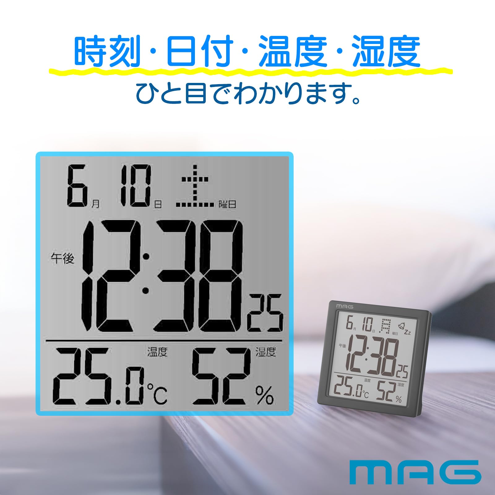 MAG(マグ) 目覚まし時計 置き時計 デジタル 温度計 湿度計 温湿度計 カレンダー 電子音 アラーム スヌーズ ライト ブラック カッシーニ AT-726 BK-Z ノア精密