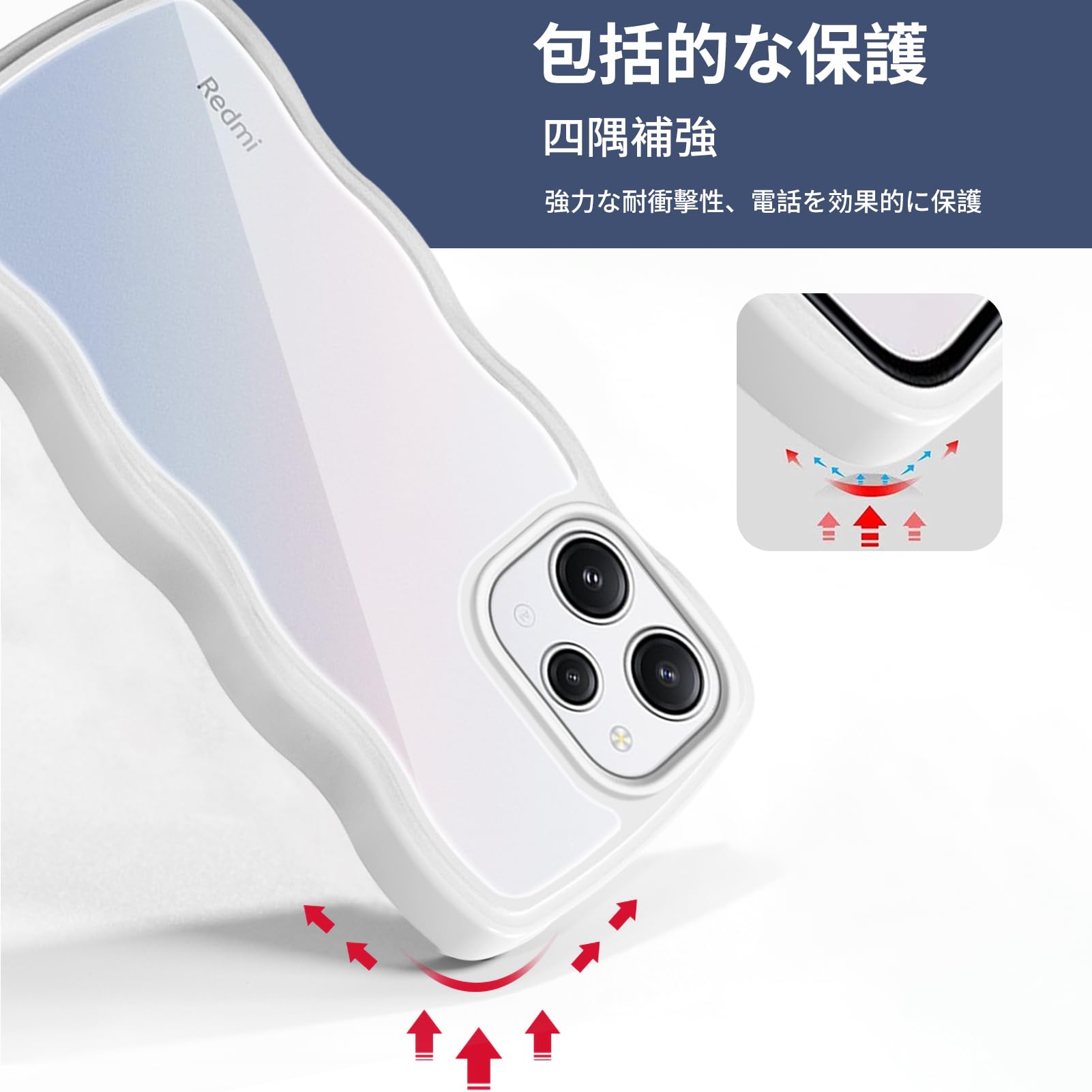 Xiaomi Redmi 12 5G ケース クリア 全面保護 シャオミ リドミ12 5G スマホケース 人気 かわいい XIG03 カバー 透明 耐衝撃 滑り止め 薄型 軽量 TPU レンズ保護 おしゃれ 落下防止 ワイヤレス充電対応 (ホワイト)