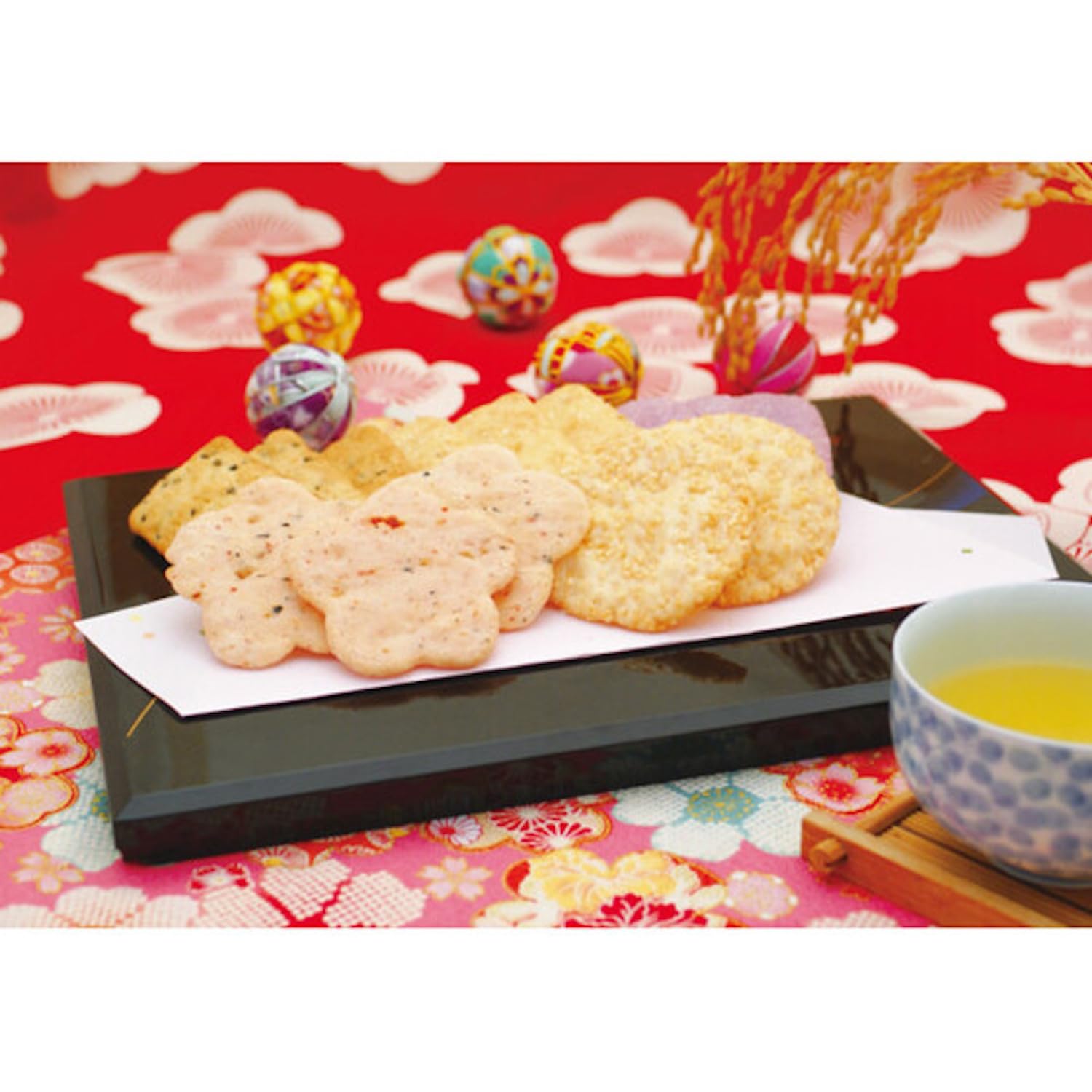 種類も豊富で、彩り豊かなお煎餅。見た目も華やかな個包装仕様。数もたくさん入っているので贈り物にオススメです。包装紙でラッピング済みなので、届いたらすぐにお渡しいただけます。