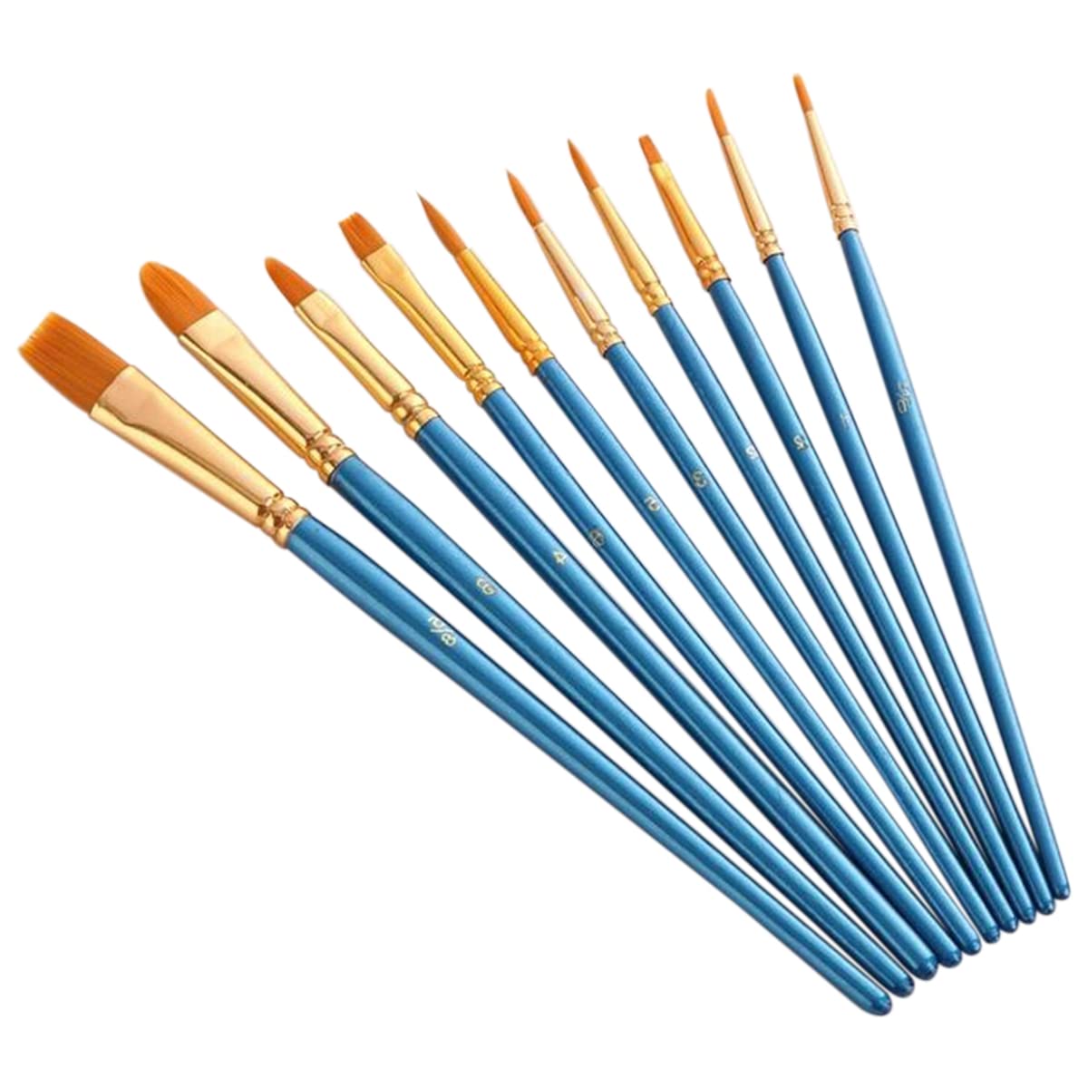 水彩筆 画材筆 面相筆 ペイントブラシ 10本 アクリル絵の具 平型筆 丸筆 ナイロンの毛 画筆 短毛筆(10本セット)