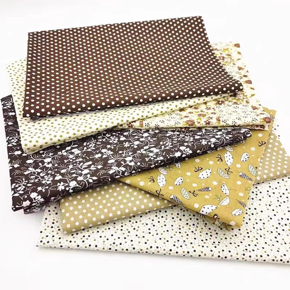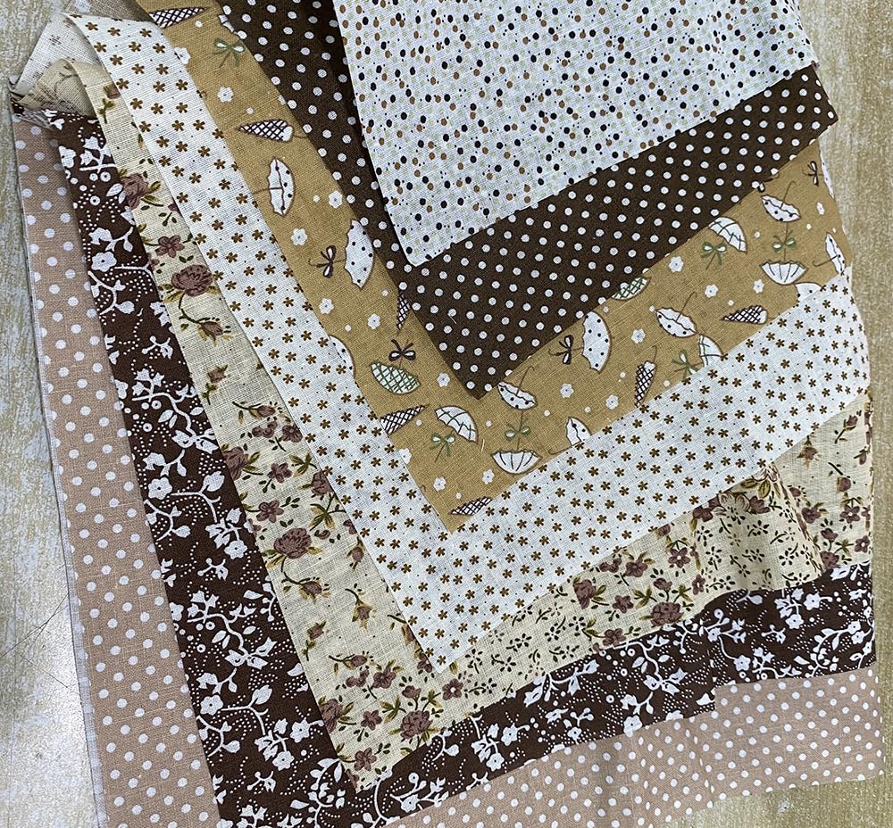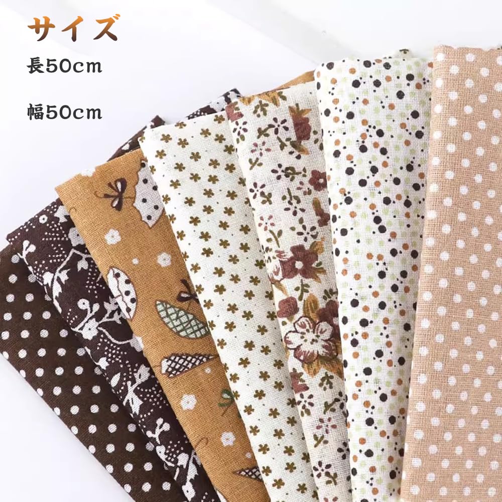 サムコス 7枚図案セット 生地 布 50*50cm 花柄 パッチワーク布 カットクロス 綿 DIY手芸用 ハンドメイド 小花 はぎれ 花 縫う手作り パッチワー 室内装飾 (茶色)
