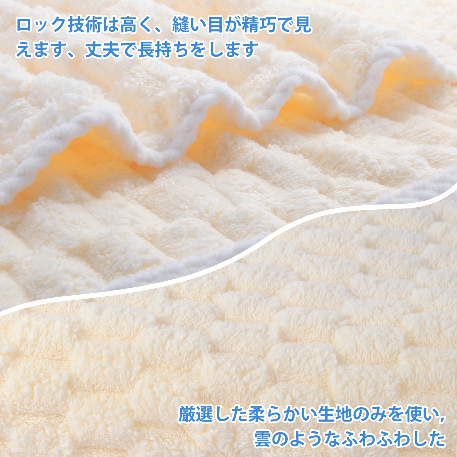 【肌触り柔らかい】柔らかな肌触りで心地よく、通常のタオルより細番手の高級マイクロファイバー素材を使用し、繊細な柔らかさが生まれます。ふかふかの起毛タイプなので、成人だけではなく赤ちゃんでもお肌を優しく包み込んでくれます。