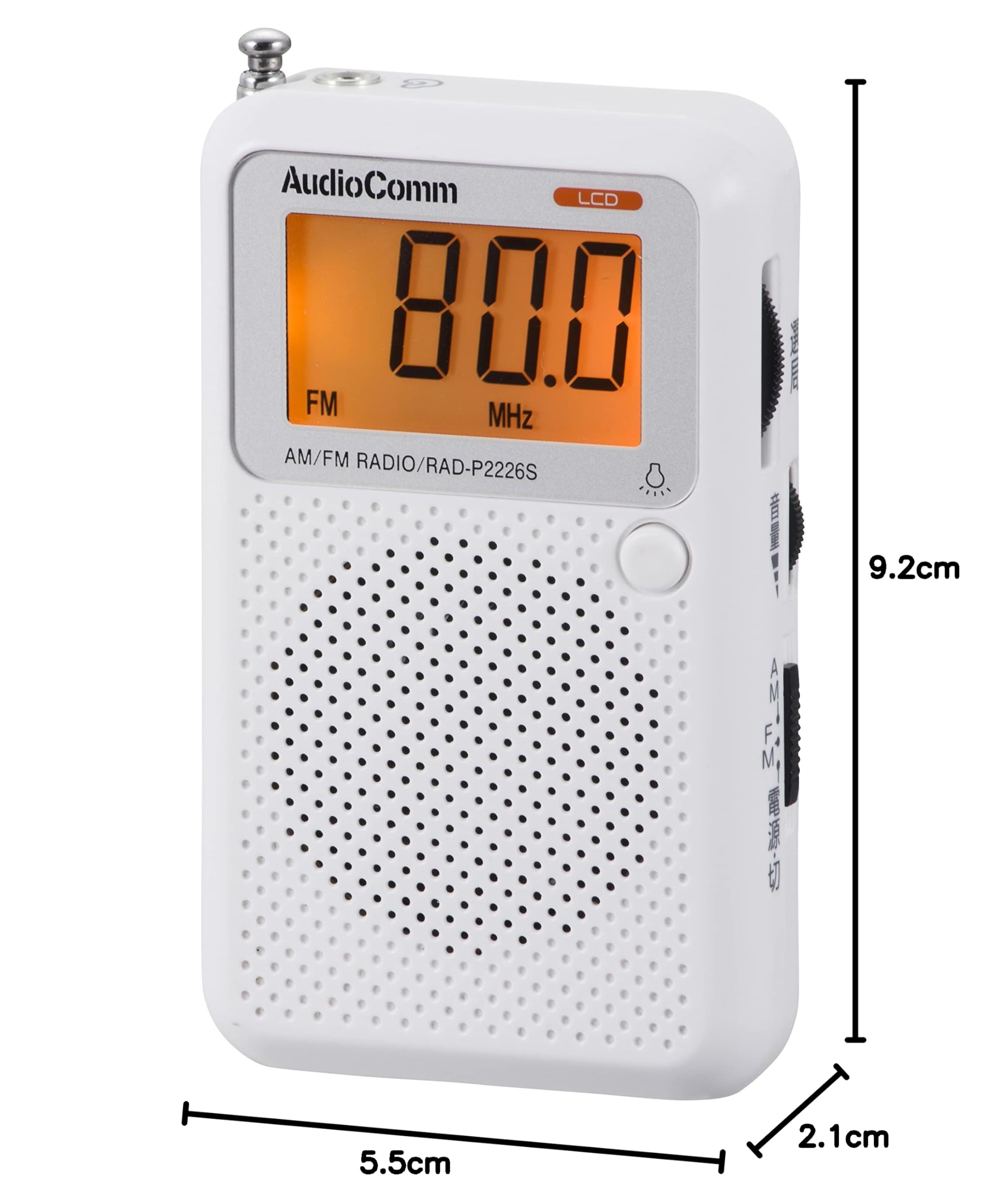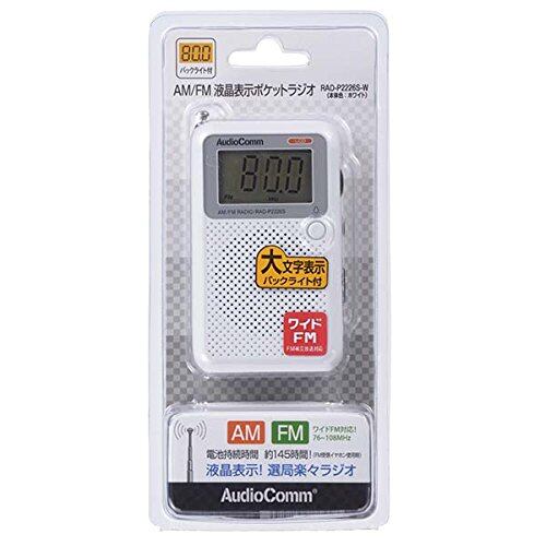 AudioComm AM/FM液晶表示ポケットラジオ ワイドFM対応 ホワイト RAD-P2226S-W 07-8855