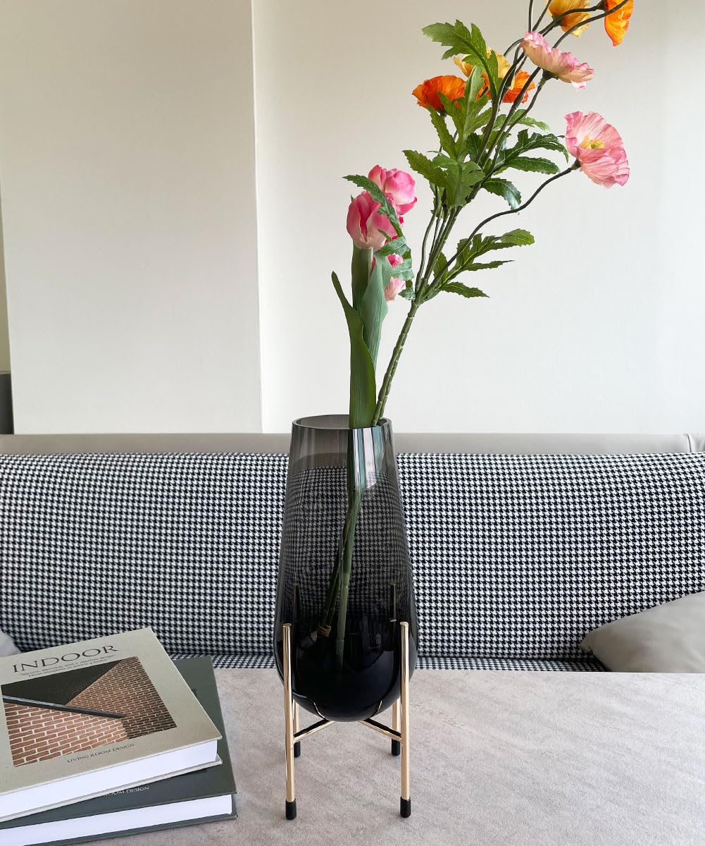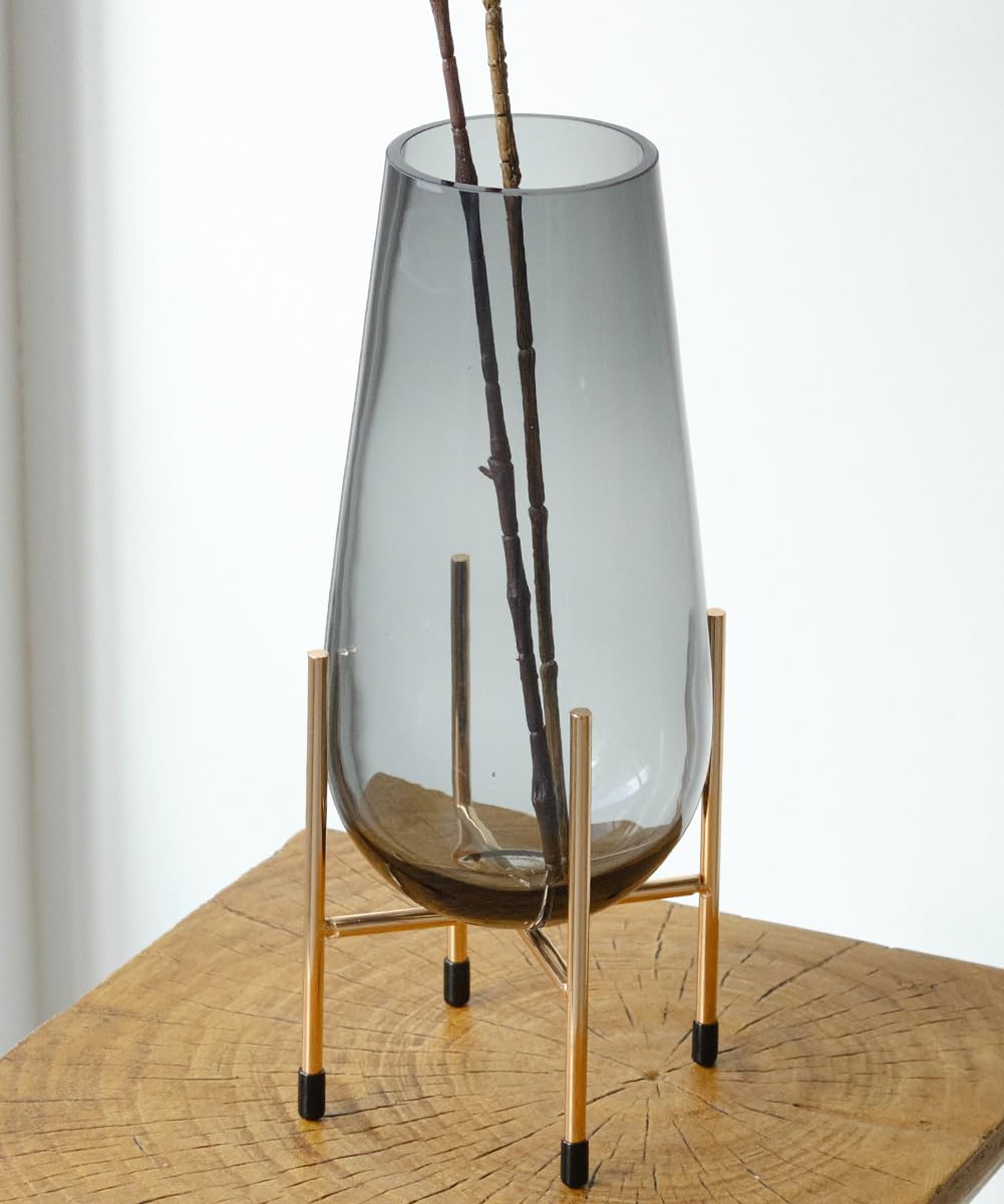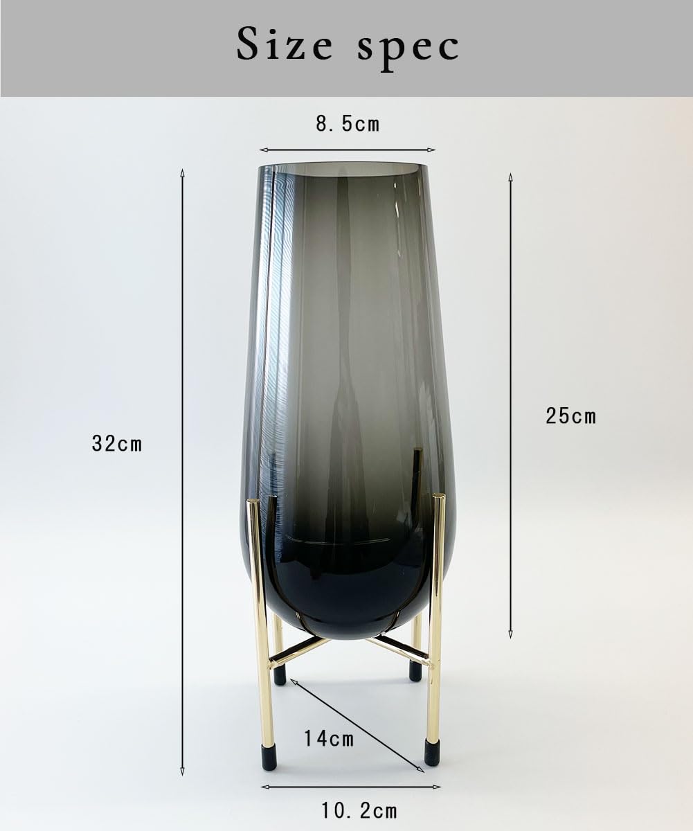 【特価在庫】花瓶 花びん フラワーベース ガラス 生花 ドライフラワー 韓国 北欧 おしゃれ かわいい 可愛い クリア モダン シンプル スマート 手吹きガラス アイアン 一輪挿し 花器 プレゼント ギフト リビング ダイニング 玄関 エントランス トイレ 花束 インテリア スモーク 滑り止め | GIGATERA