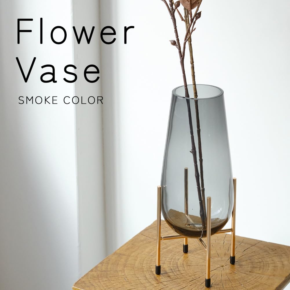 花瓶 花びん フラワーベース ガラス 生花 ドライフラワー 韓国 北欧 おしゃれ かわいい 可愛い クリア モダン シンプル スマート 手吹きガラス アイアン 一輪挿し 花器 プレゼント ギフト リビング ダイニング 玄関 エントランス トイレ 花束 インテリア スモーク 滑り止め