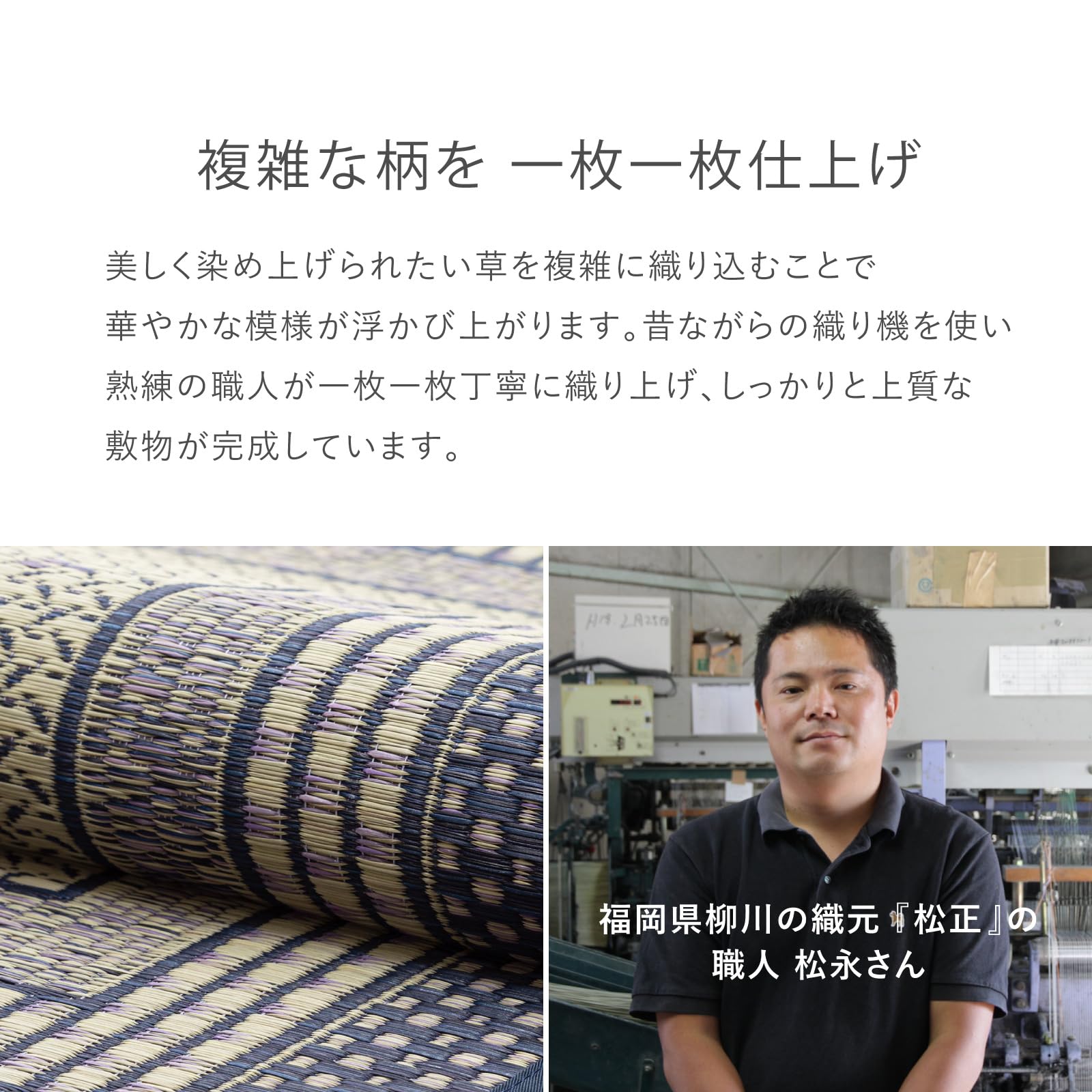 【組成】 表面:国産い草100% 袋織 裏面:不織布(滑りにくい加工) 縁:綿100% 四方縁
