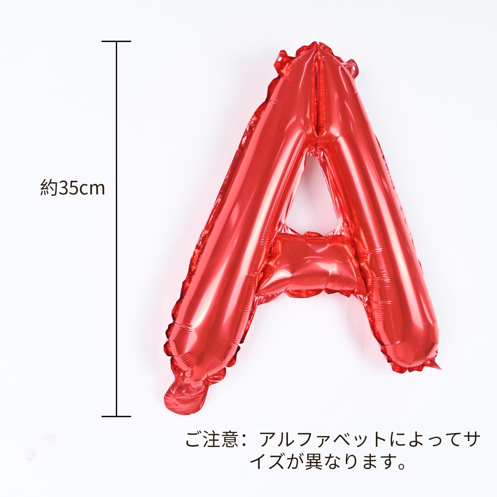 【サイズ】1文字縦約35cm 【カラー】レッド 【素材】アルミ素材 シンプルでメタリックなレッドのフィルムバルーンなので、様々なシーンや、テーマカラーに馴染みが良いです。重量:150g。(取り扱いの注意:対象年齢6+以上)