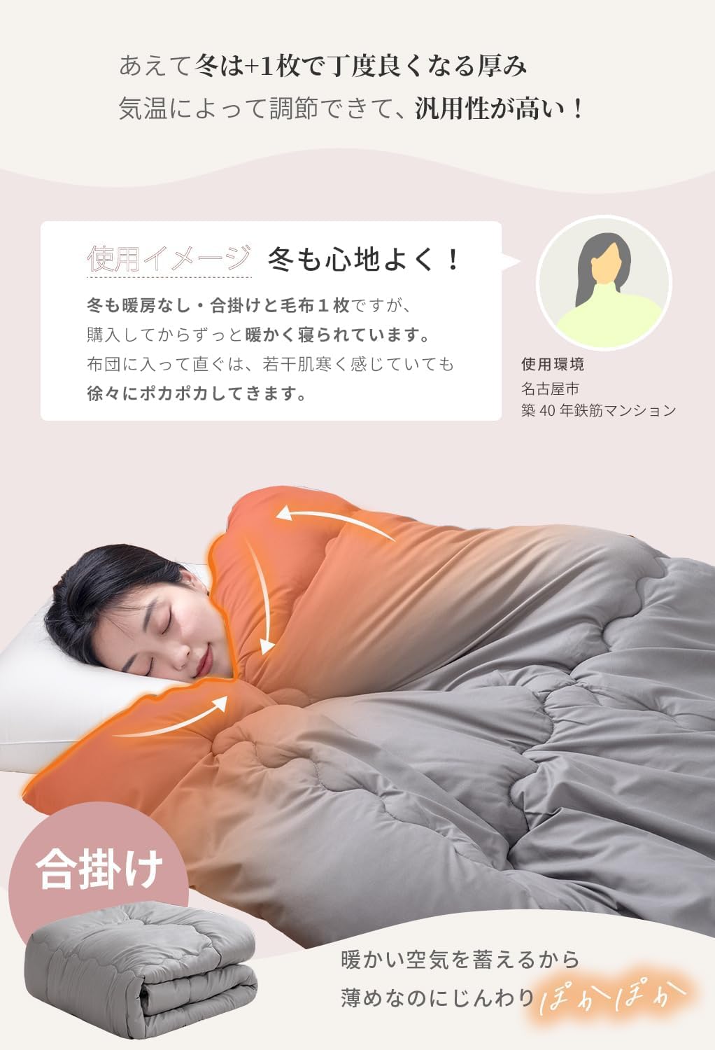 【ふかふかで暖か】蓄熱・保温素材使用で肌掛けなのに暖かい!キルティング加工で、通気・放湿性も高いので、エアコンの効いた夏場のお部屋でも使えます。