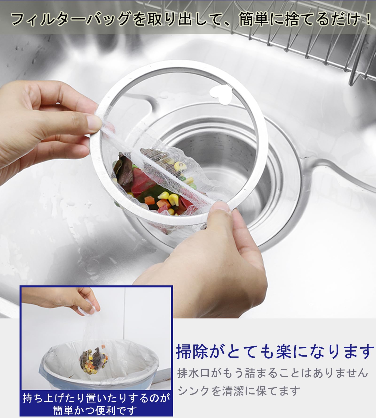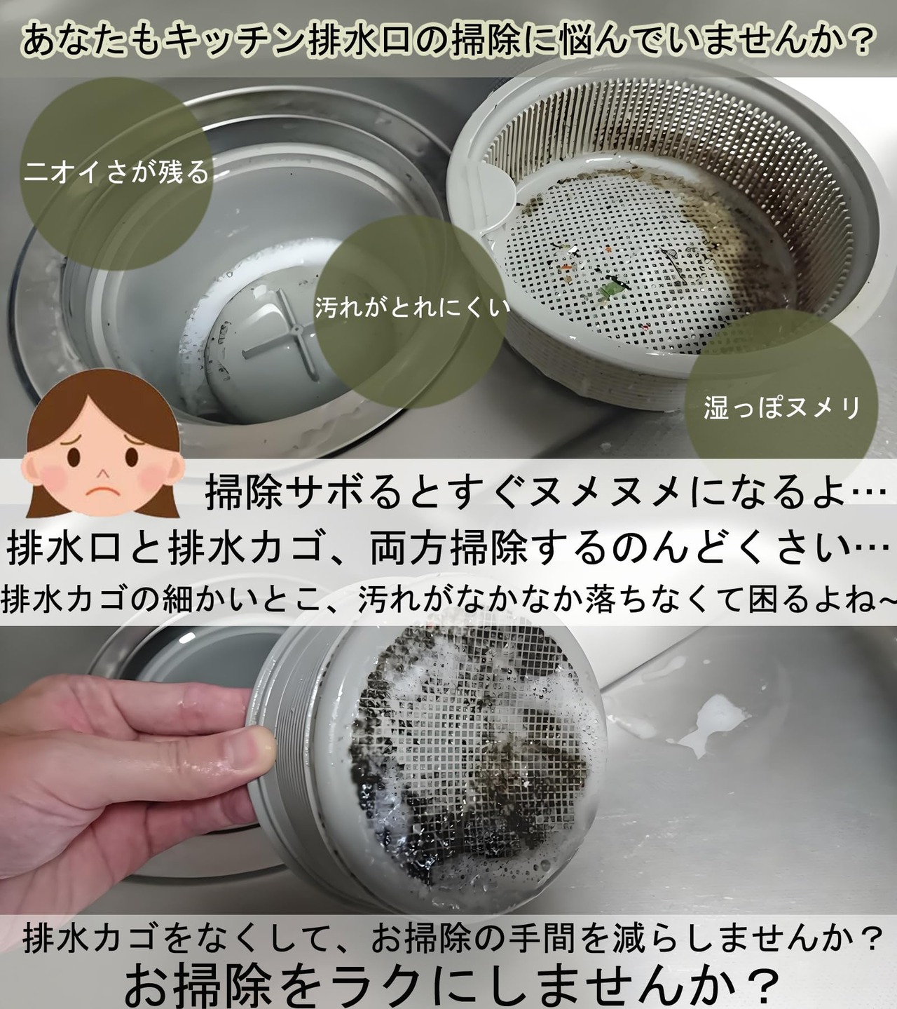 【掃除の手間から解放】バスケット不要で水切りネットを固定するだけで、排水溝のゴミ受けの掃除が不要に。面倒な掃除から解放され、ストレスフリーなキッチンライフを実現します。