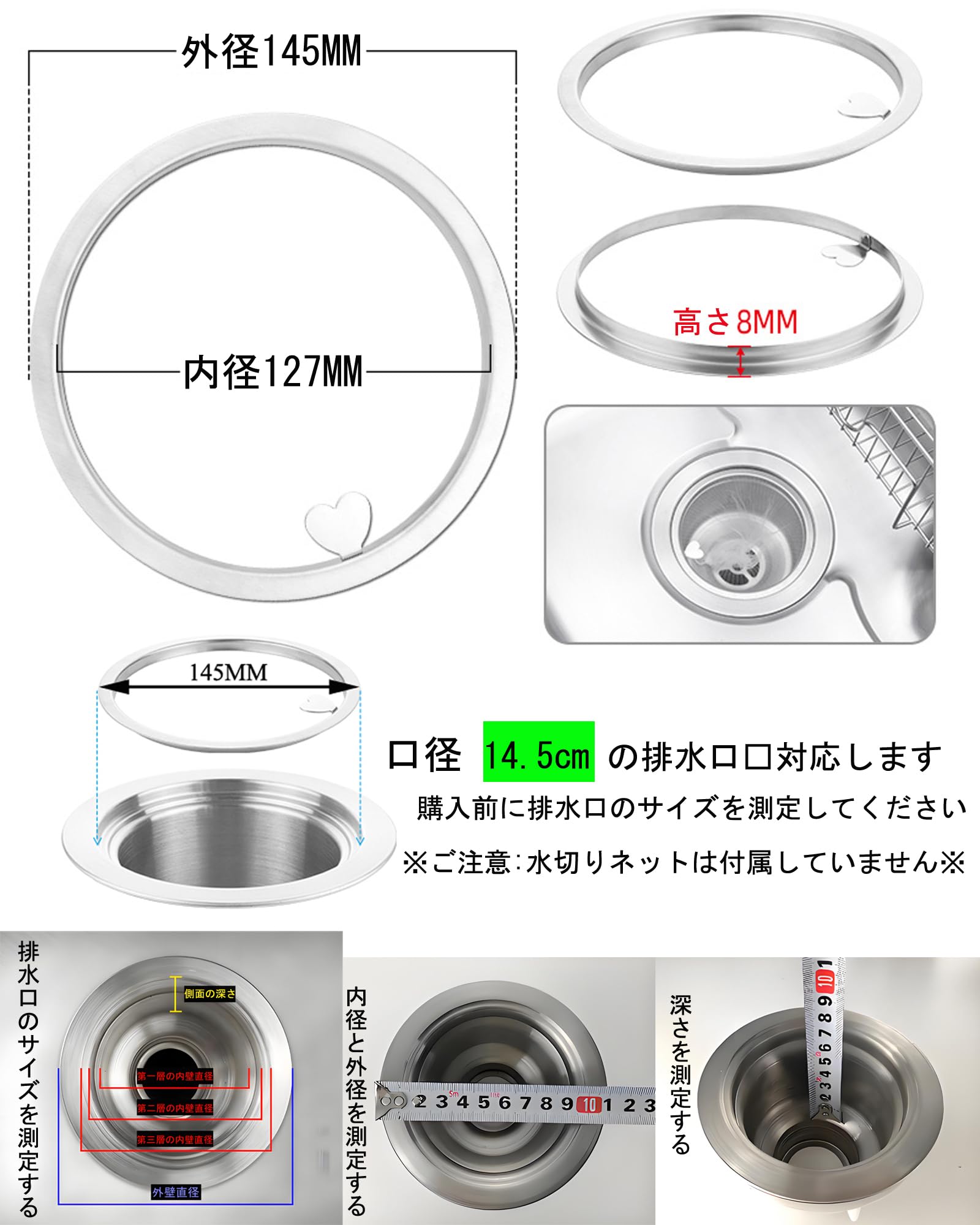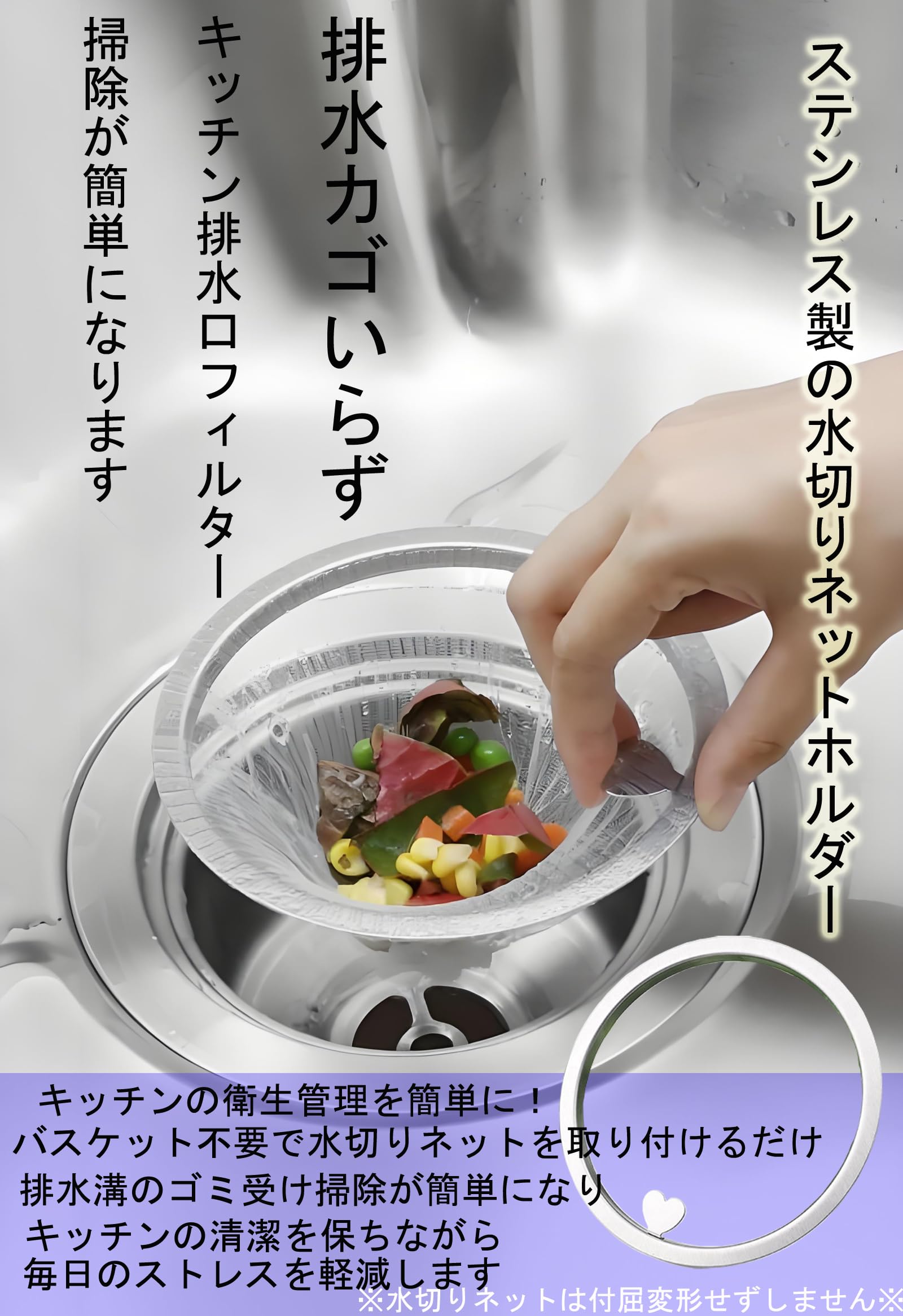 排水口 水切りネットホルダー キッチン用 排水溝 ゴミ受け ステンレス製 排水口リング バスケット不要 簡単設置 掃除も楽々 便利 口径14.5cm対応