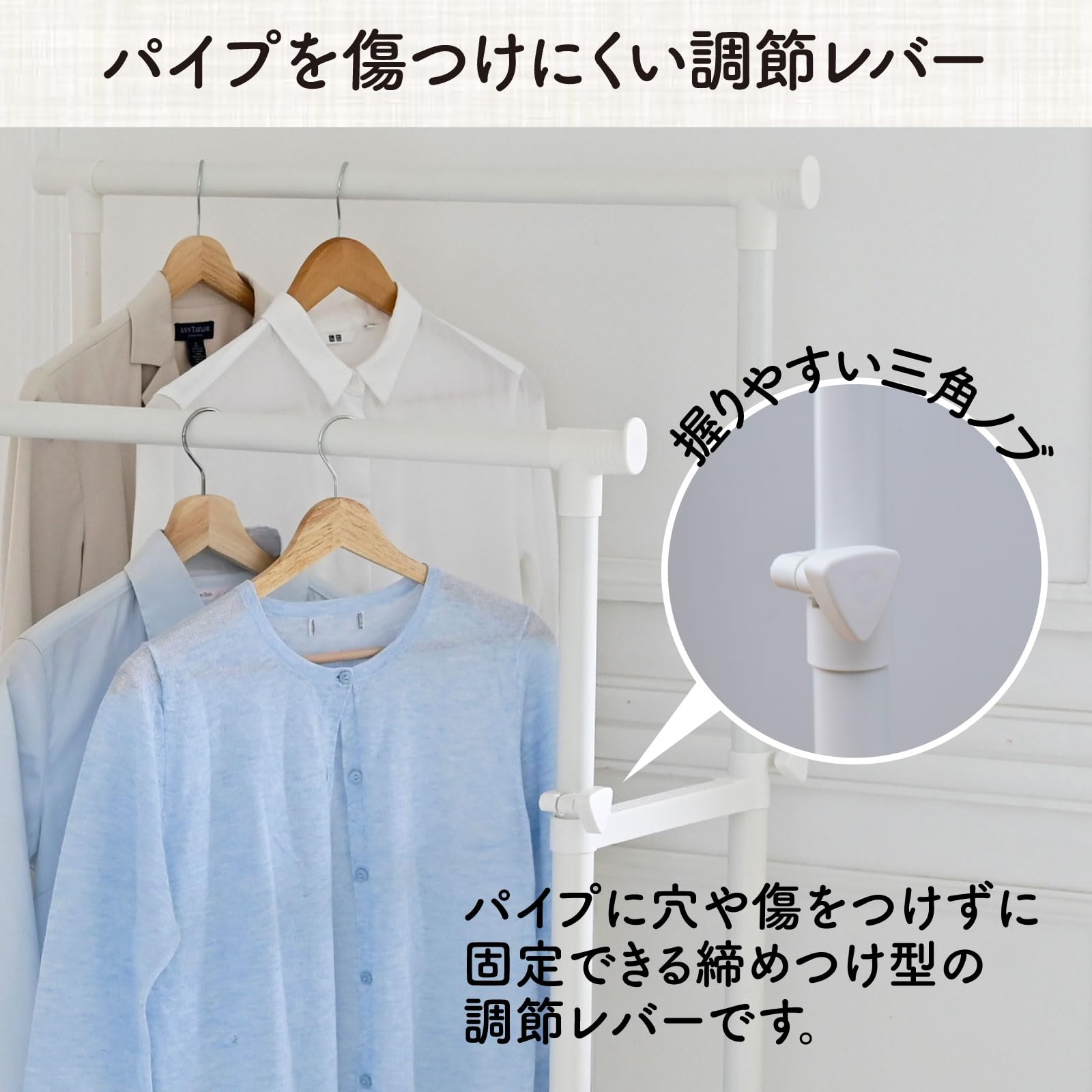 【パイプを傷つけにくい調節レバー】締め付け型調節レバーで、パイプに穴や傷ができにくくなっています。三角形のノブで握りやすくしっかり固定できます。