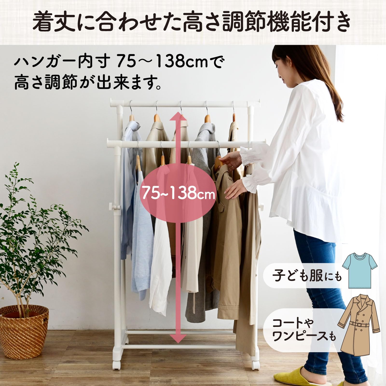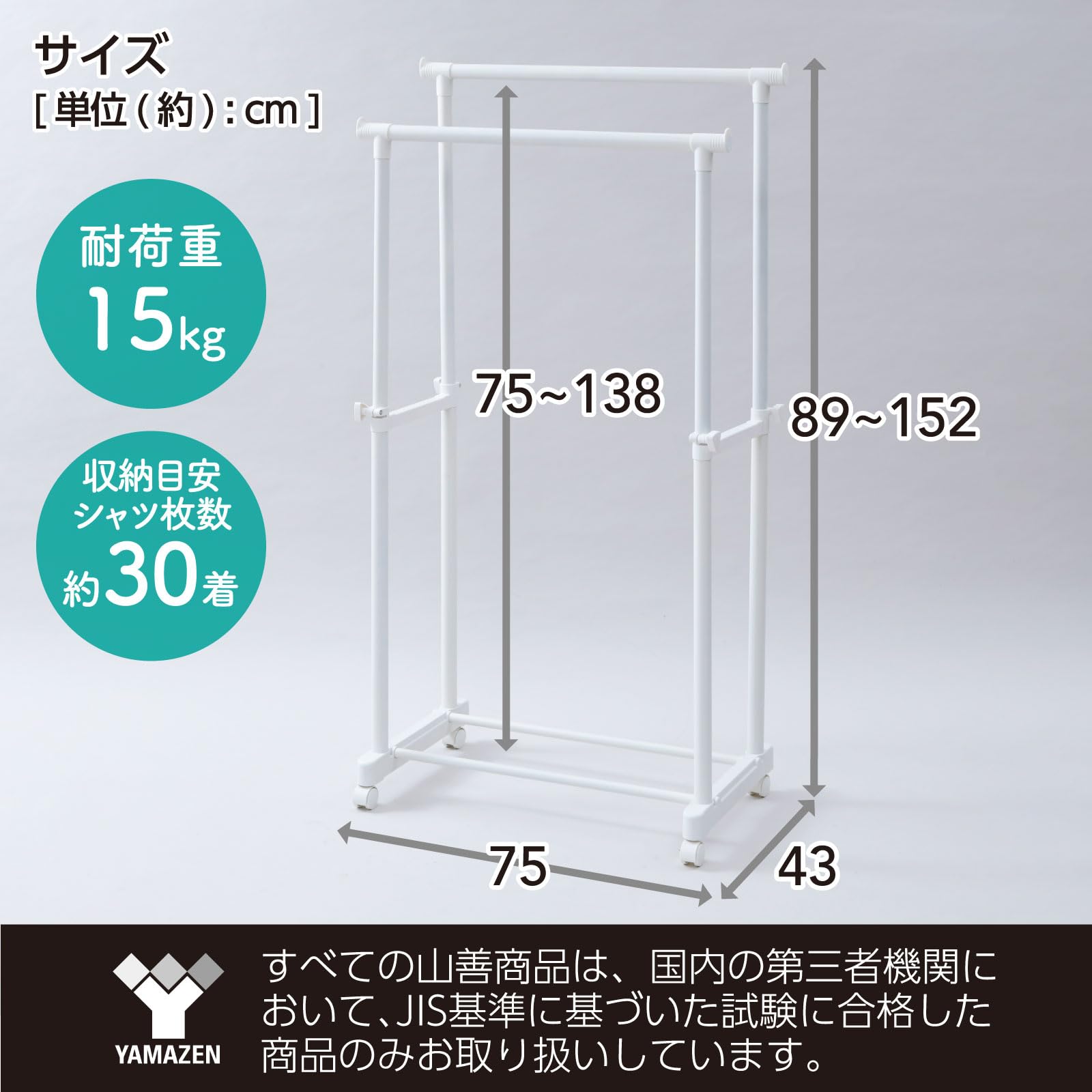 山善(YAMAZEN) ハンガーラック キャスター付き 縦伸縮 ダブル 幅75×奥行43×高さ89-152cm 組立品 オールホワイト MKS-W(AWH)