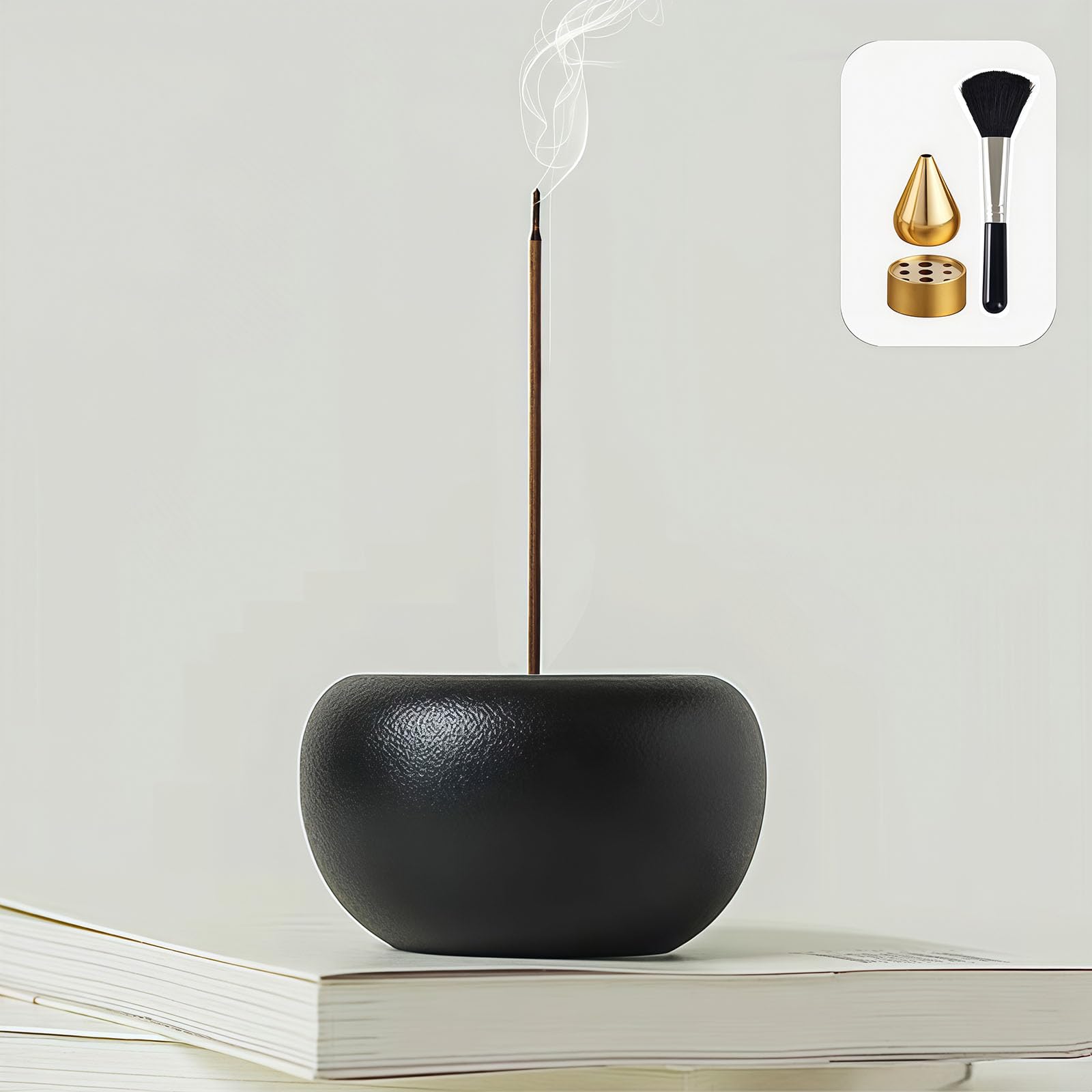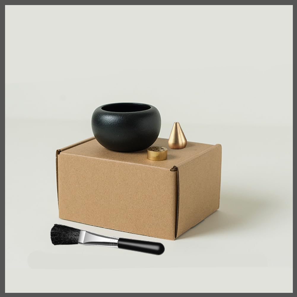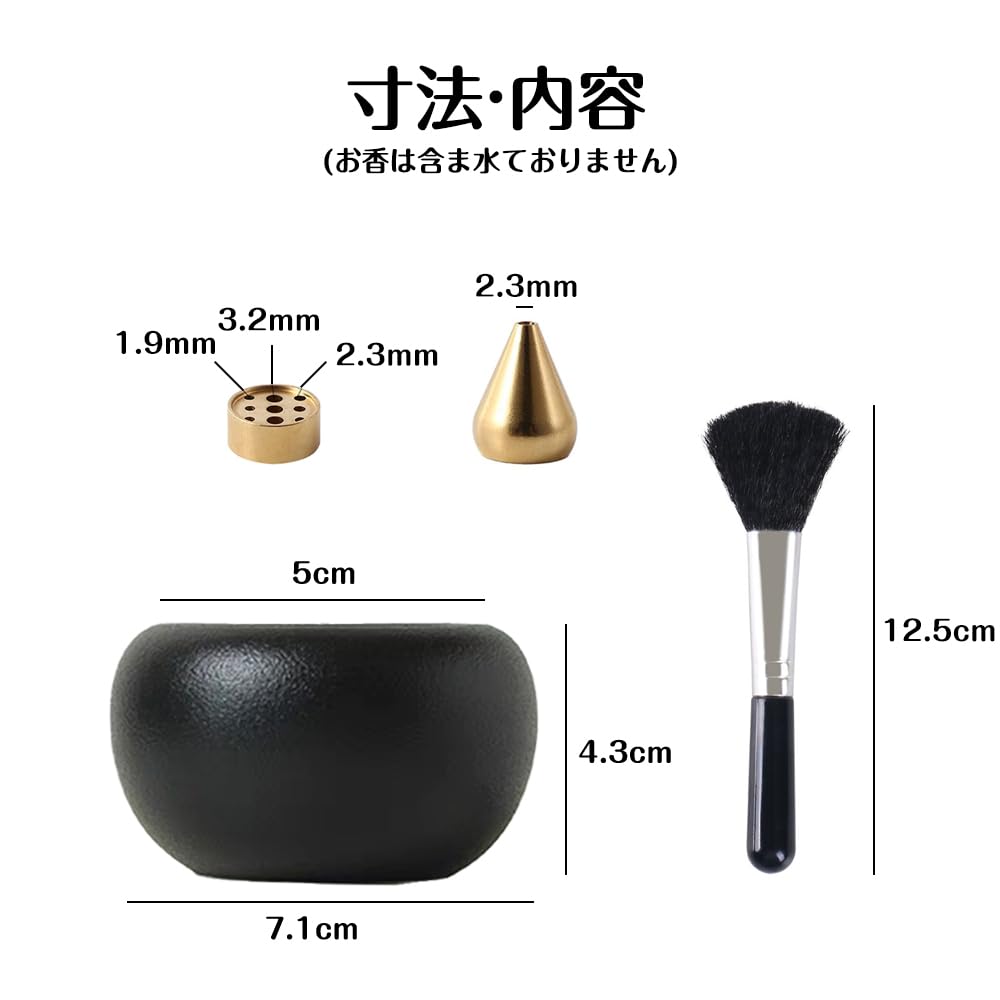 ?【セット内容・仕様】香炉+水滴型ホルダー+九つ穴ホルダー(お香は含まれておりません)、灰掃除用ブラシ×1本 材質:香炉/陶器製、香立て/真鍮製 香炉のサイズ(約):高さ4.3cm、口径5cm、幅員7.1cm。※直径3.0mm以下のお香にお使いいただけます。