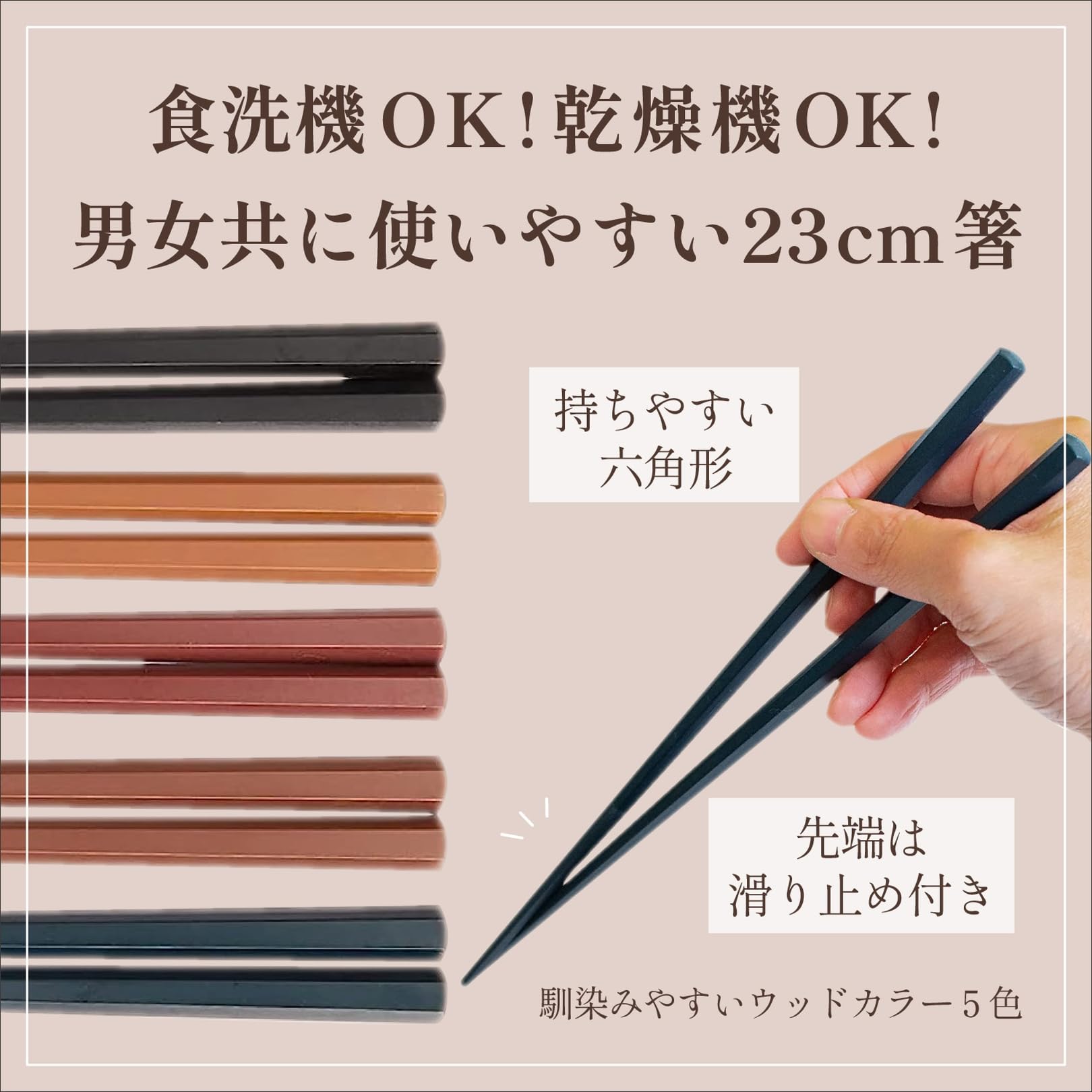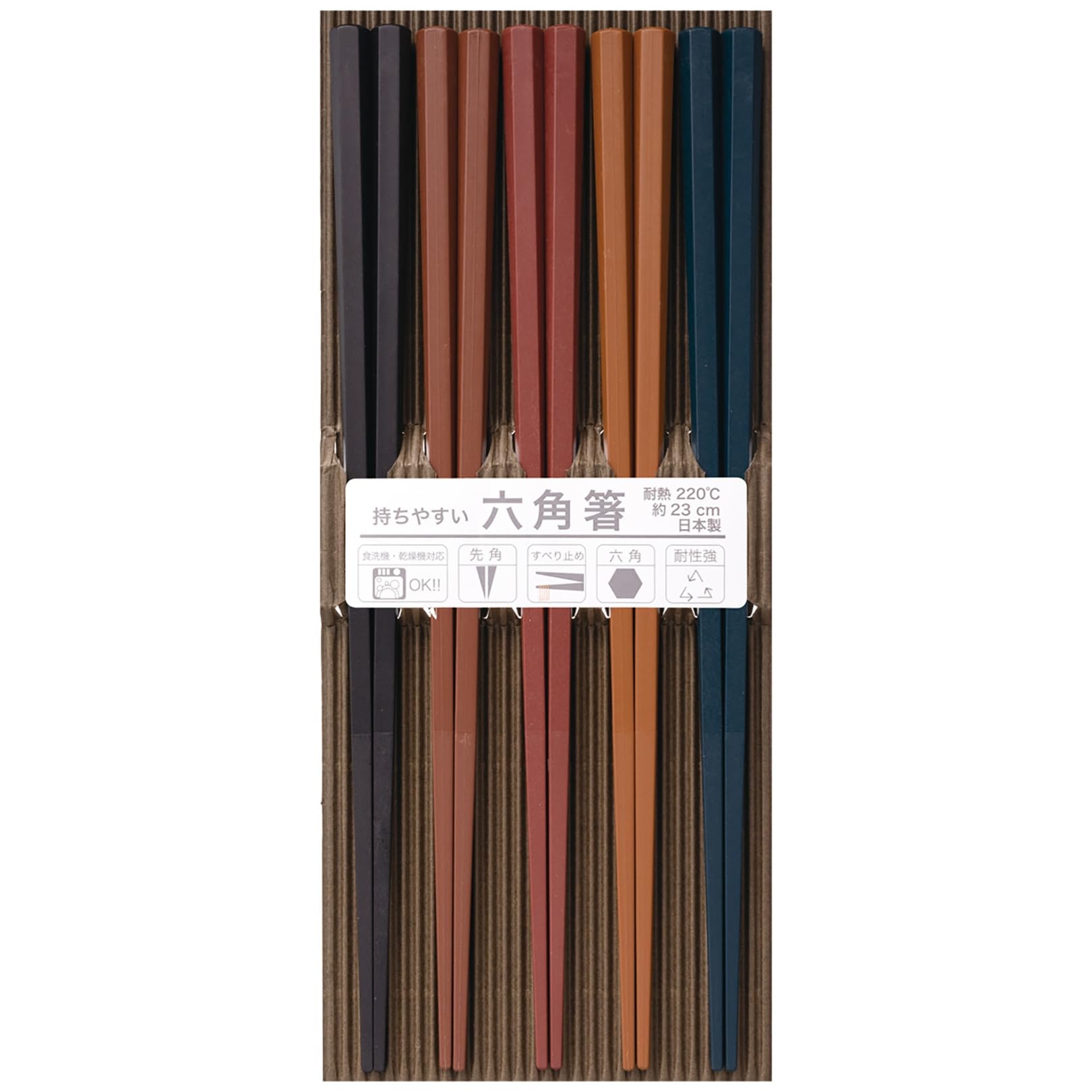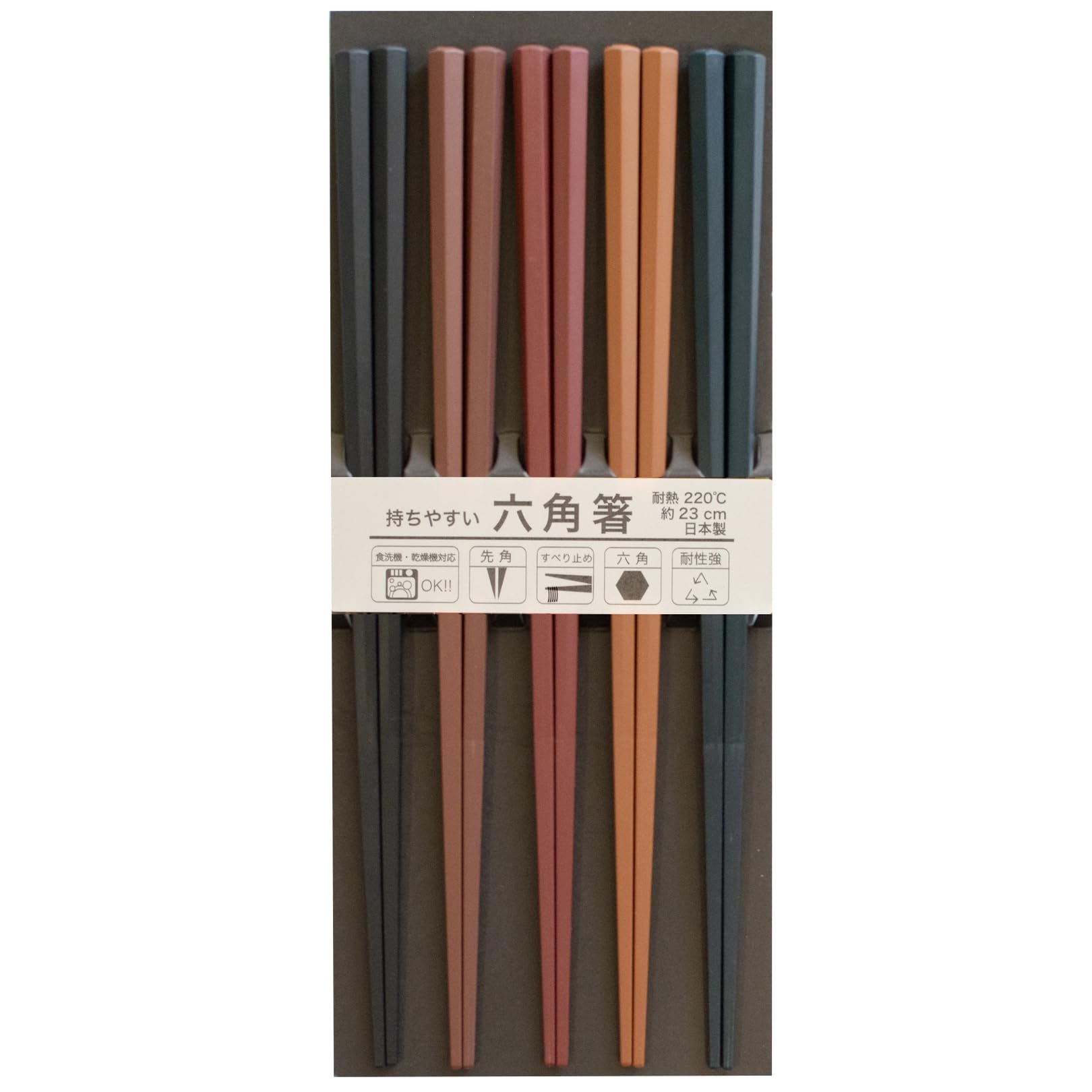箸 食洗機対応 23cm 5色 5膳 セット 樹脂製 業務用 来客用 先角 彩り六角 日本製 264840