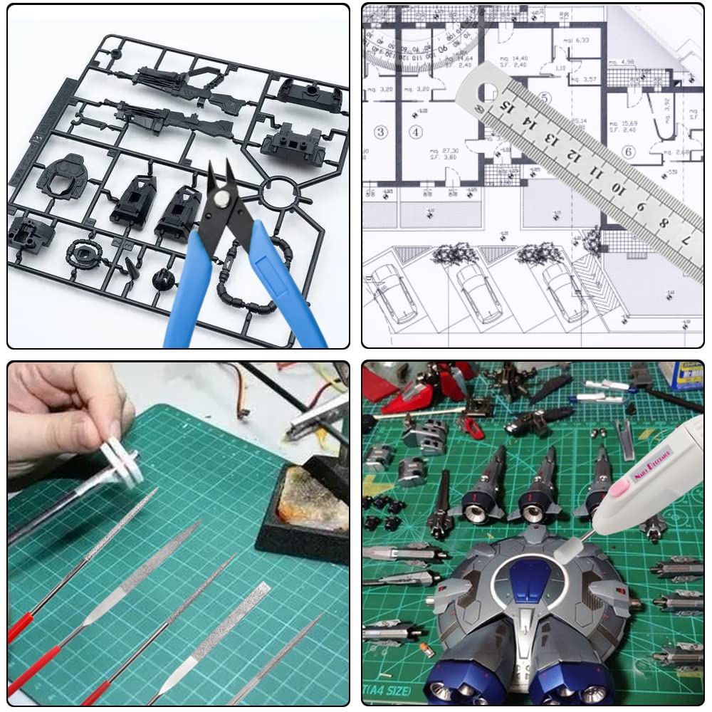 各種ツールキット: パッケージ内容: 1 x 薄刃ニッパー、2 x ピンセット、5 xファイル、4 × 両面ポリッシュバー、1 × ポリッシュ塊、1 x スチールルール、1 x 黄色モデルセパレーター、1 x 電動サンダー(単三電池(AA)2本は各自でご用意ください、電池は含まれていません)、5個の研削ヘッド。